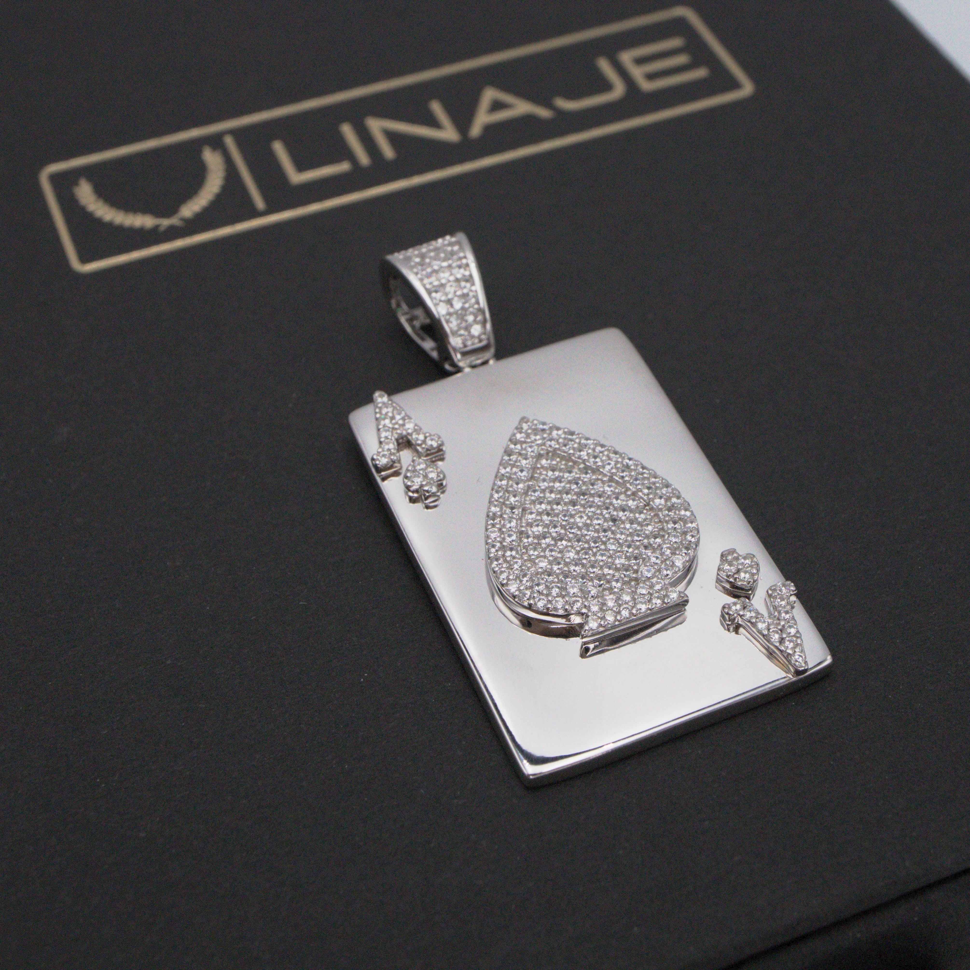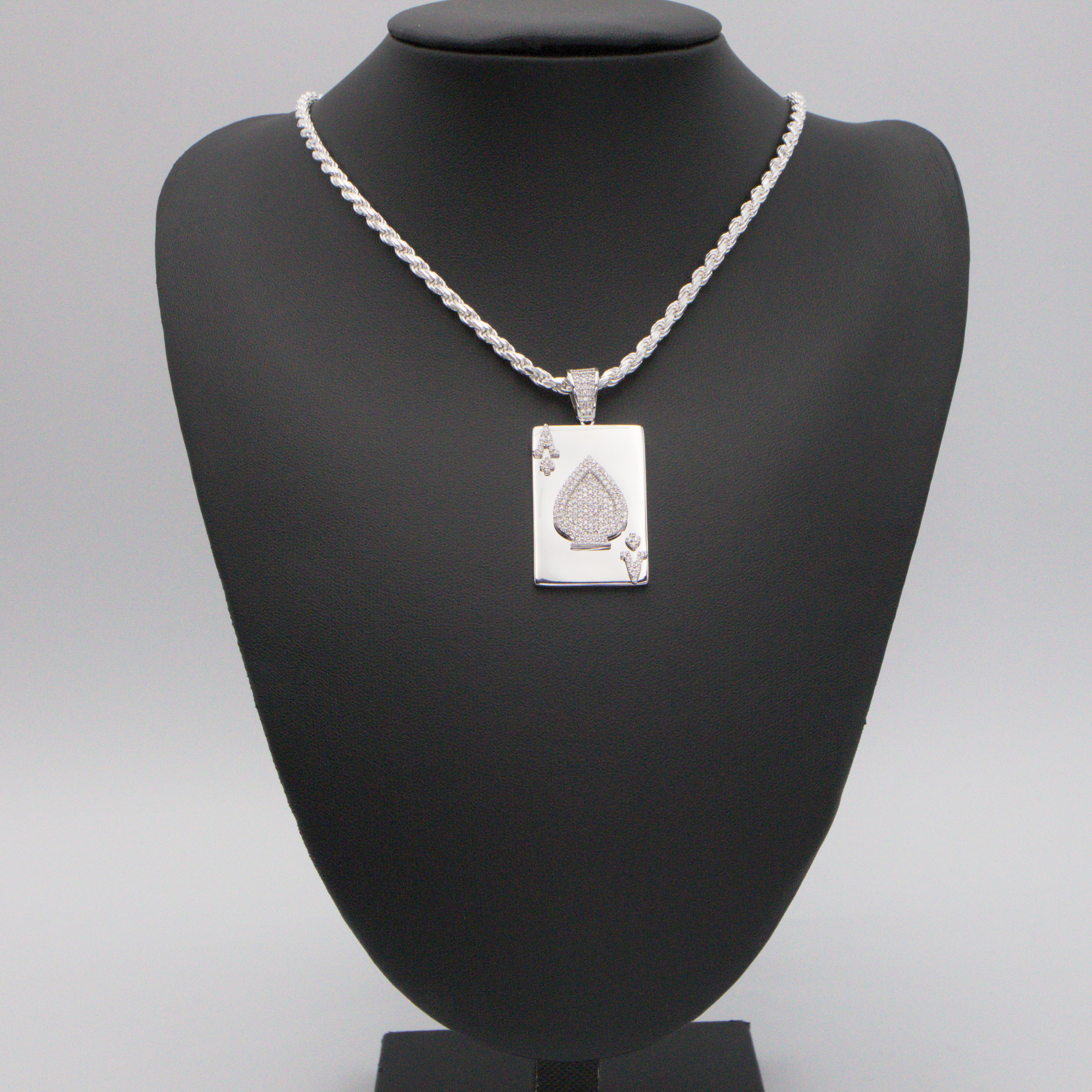 Channel the allure of luck and sophistication with our Silver Ace of Spades Pendant. Meticulously crafted from sterling silver and embellished with sparkling cubic zirconias, this pendant is more than a symbol – it's a statement of refined style.