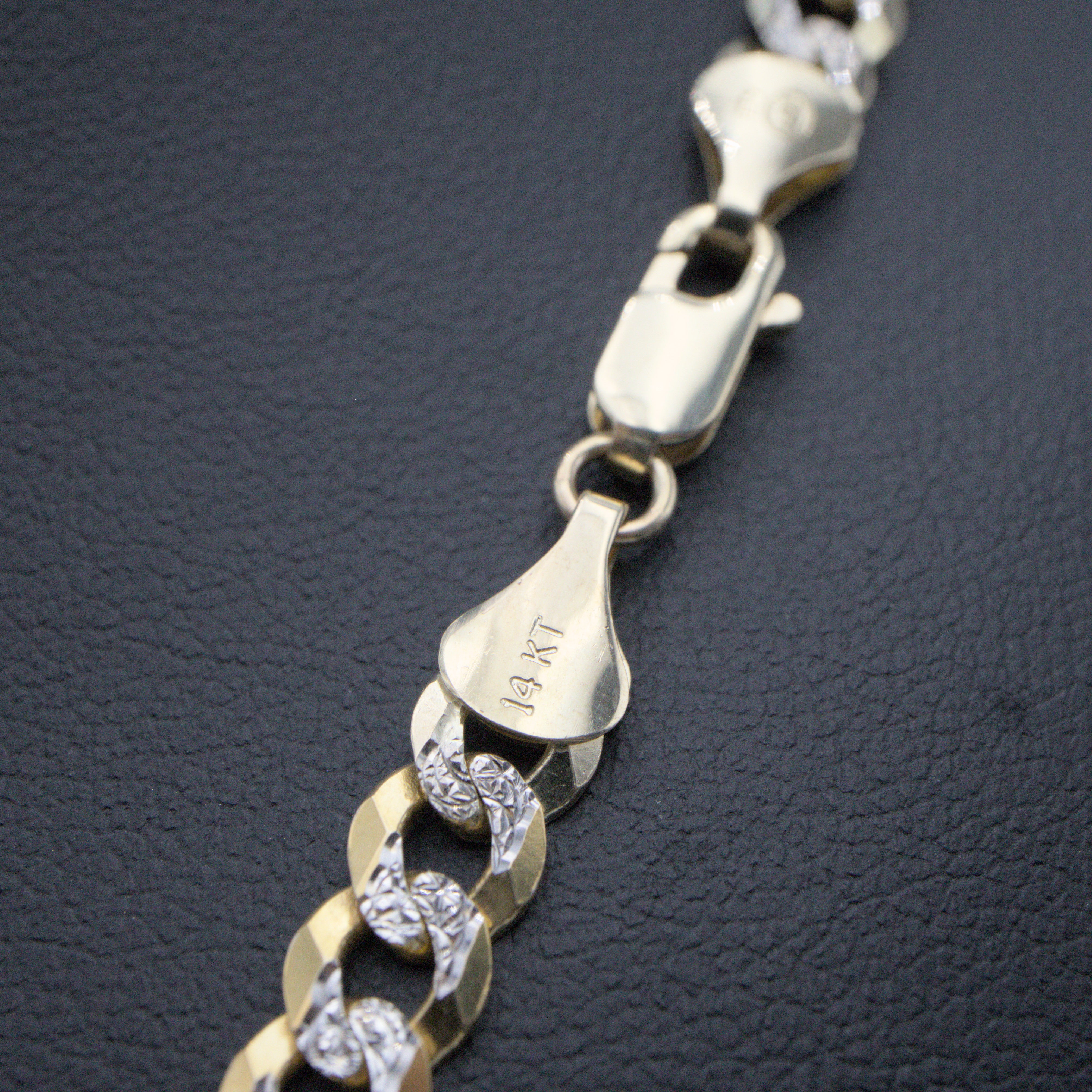 Drape yourself in opulence with our 6mm 14k Gold Curb Link Chain featuring exquisite white diamond cuts. Meticulously crafted, this chain exudes sophistication with its 6mm thickness, striking the perfect balance between boldness and refinement. Crafted in Italy with incredible attention to detail and unmatched quality.