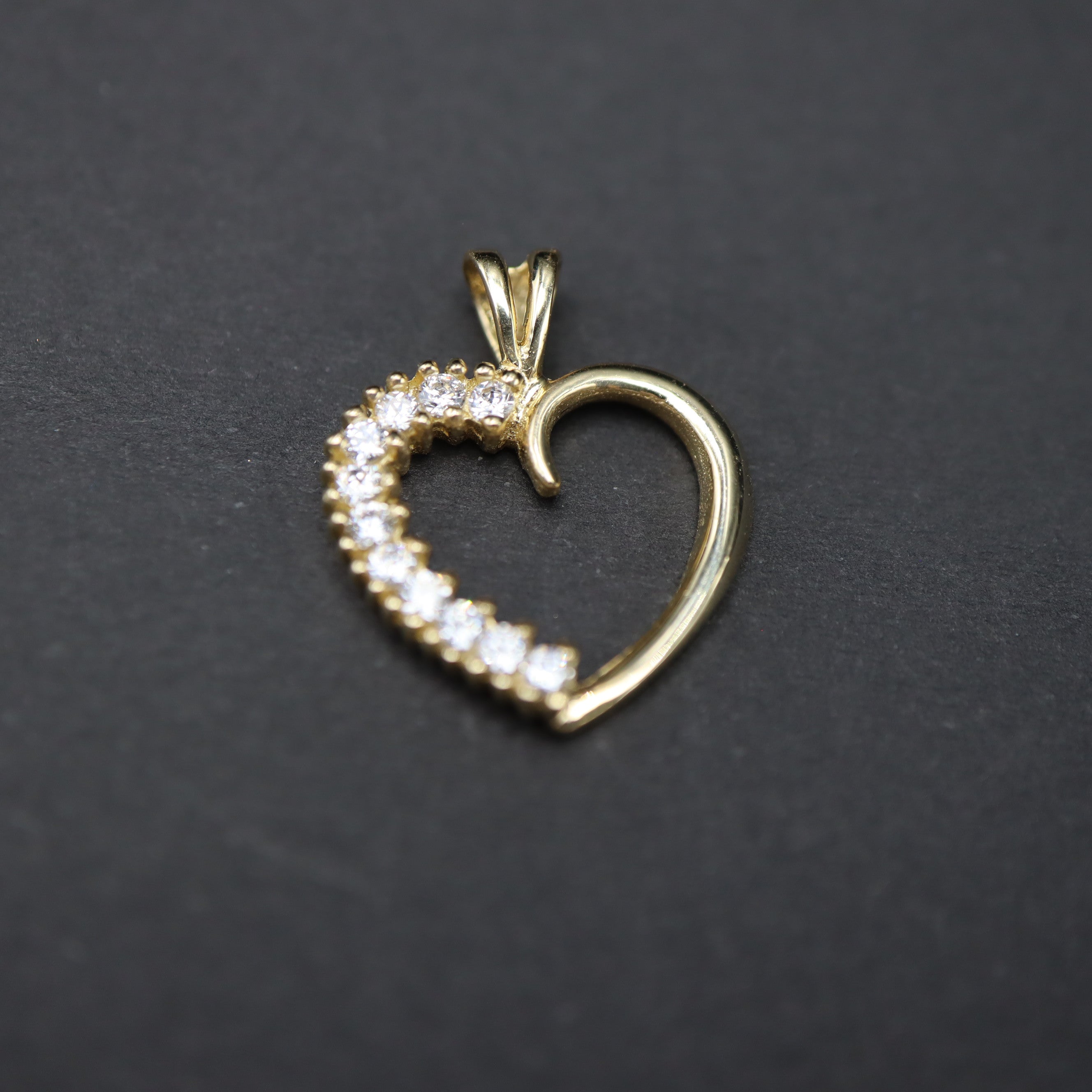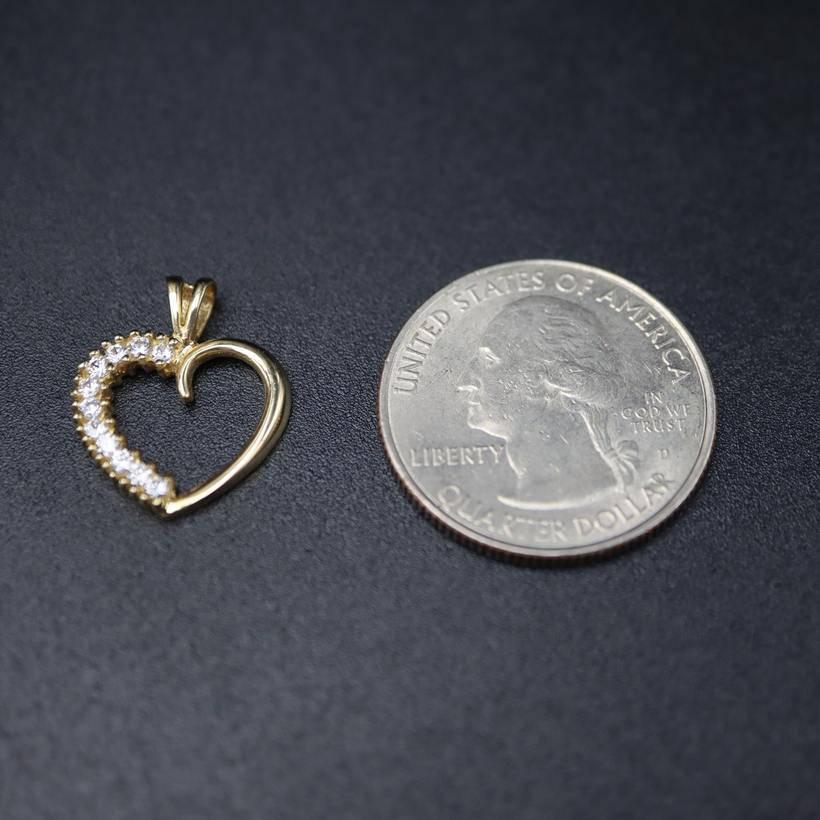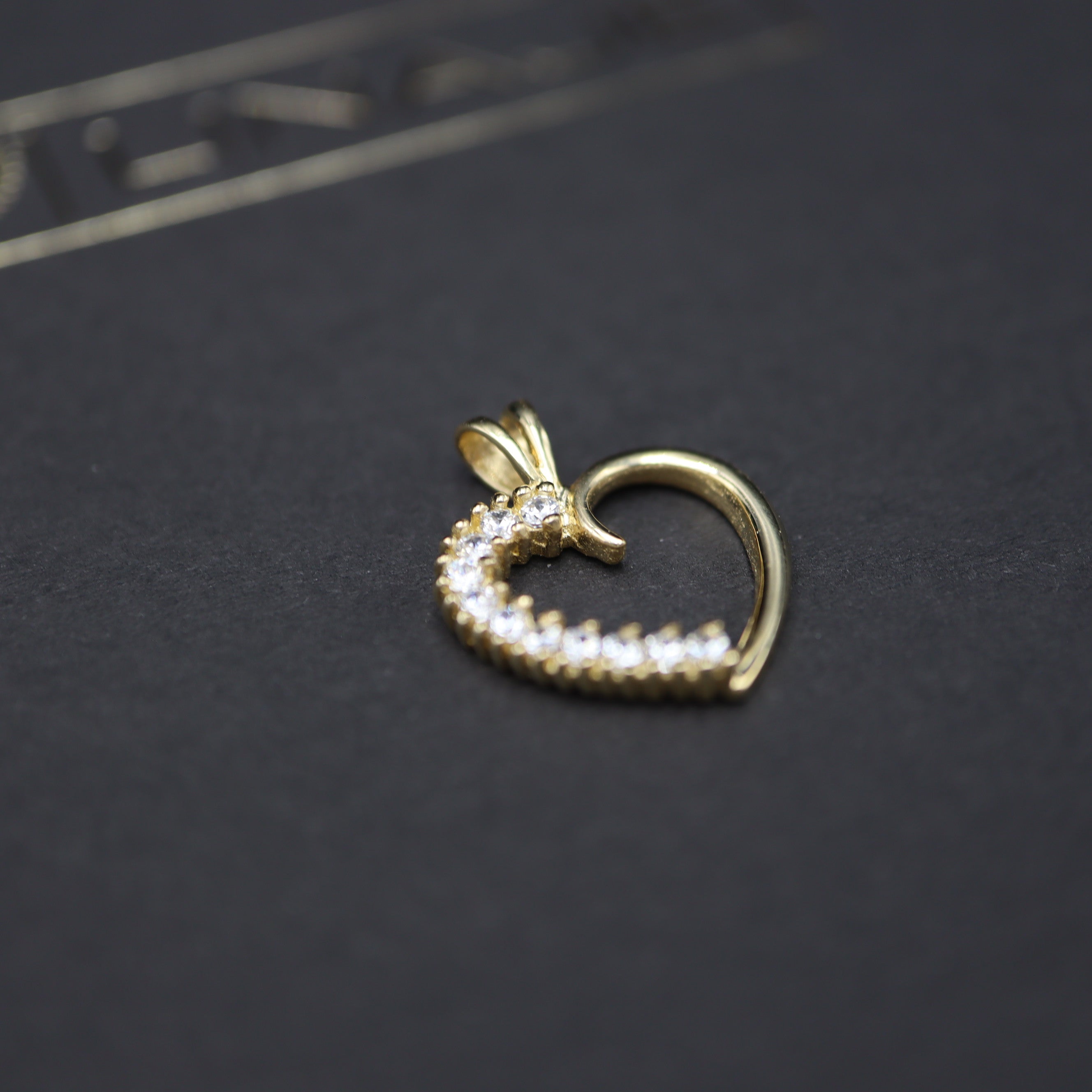 Embrace the timeless allure of love with our Heart-Shaped Pendant adorned with sparkling CZ stones. Crafted in radiant 14k gold, this elegant piece captures the essence of romance and sophistication. The dazzling CZ stones add a touch of brilliance, making this heart-shaped pendant a symbol of enduring love and style. Elevate your look with this exquisite accessory, where every sparkle reflects the radiance of your heart's affection.