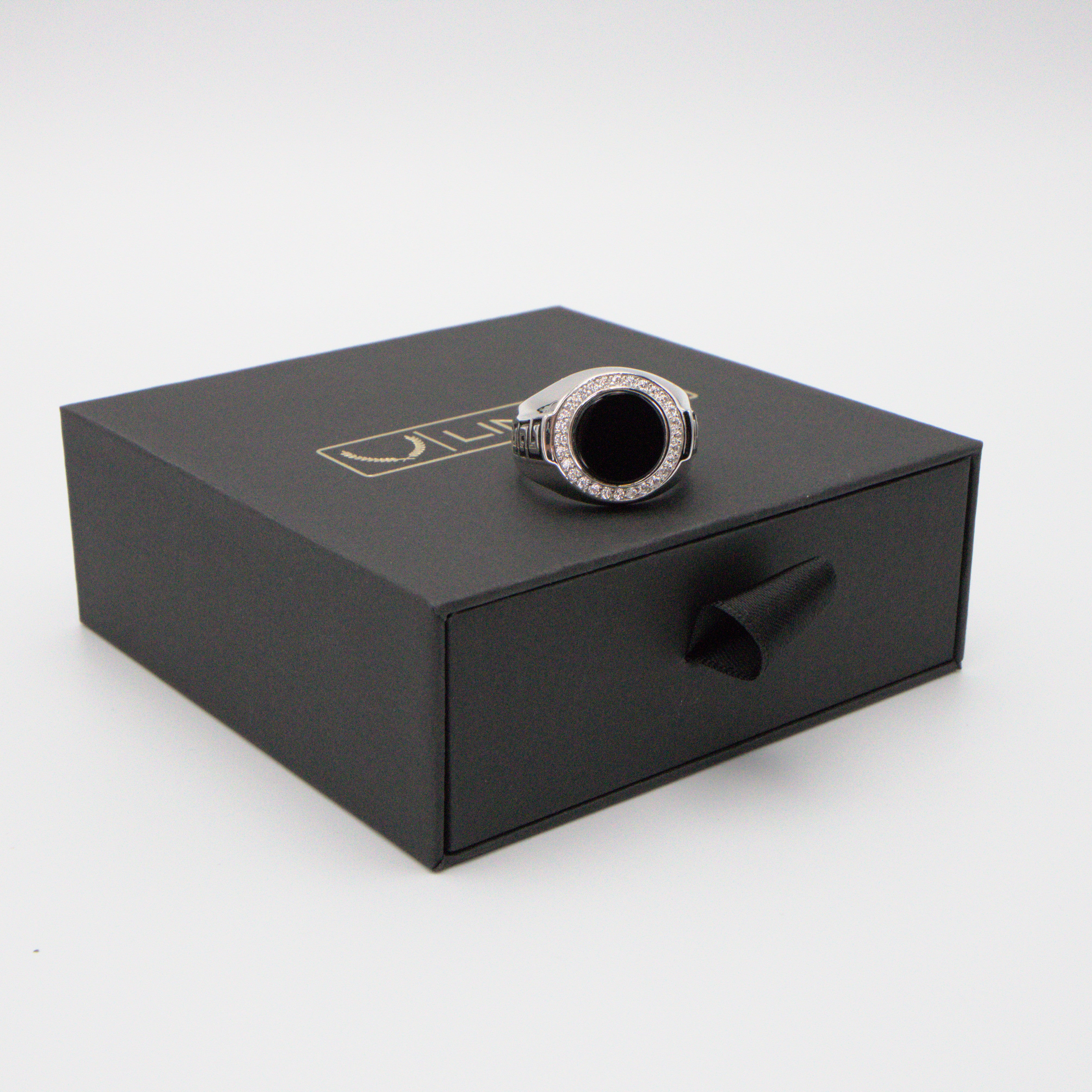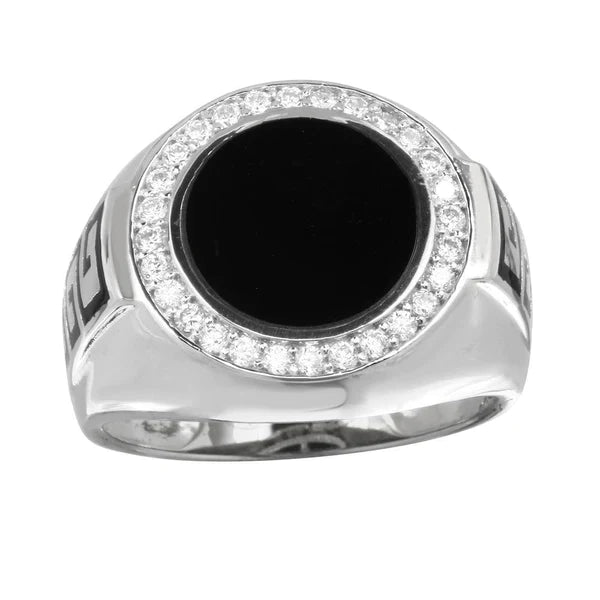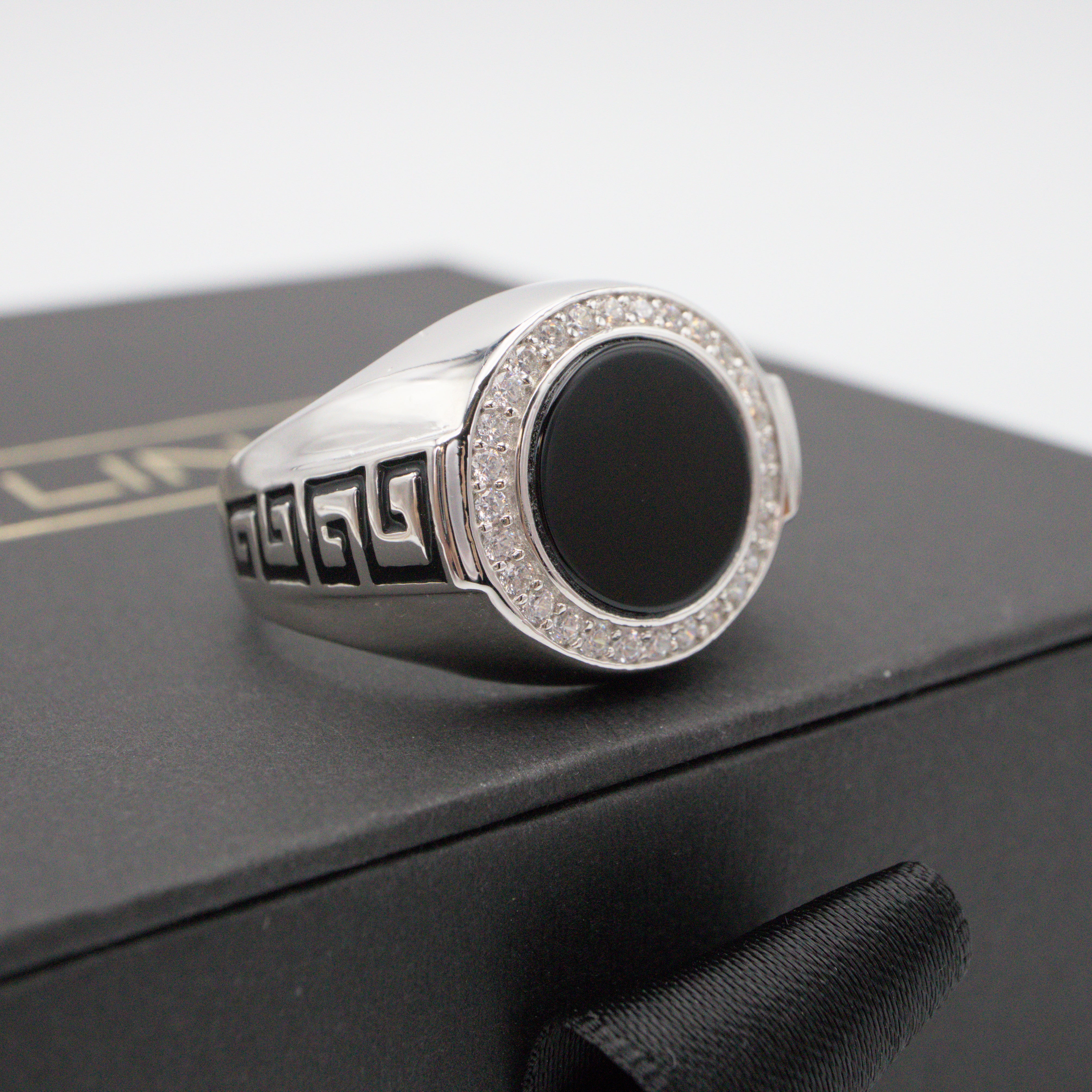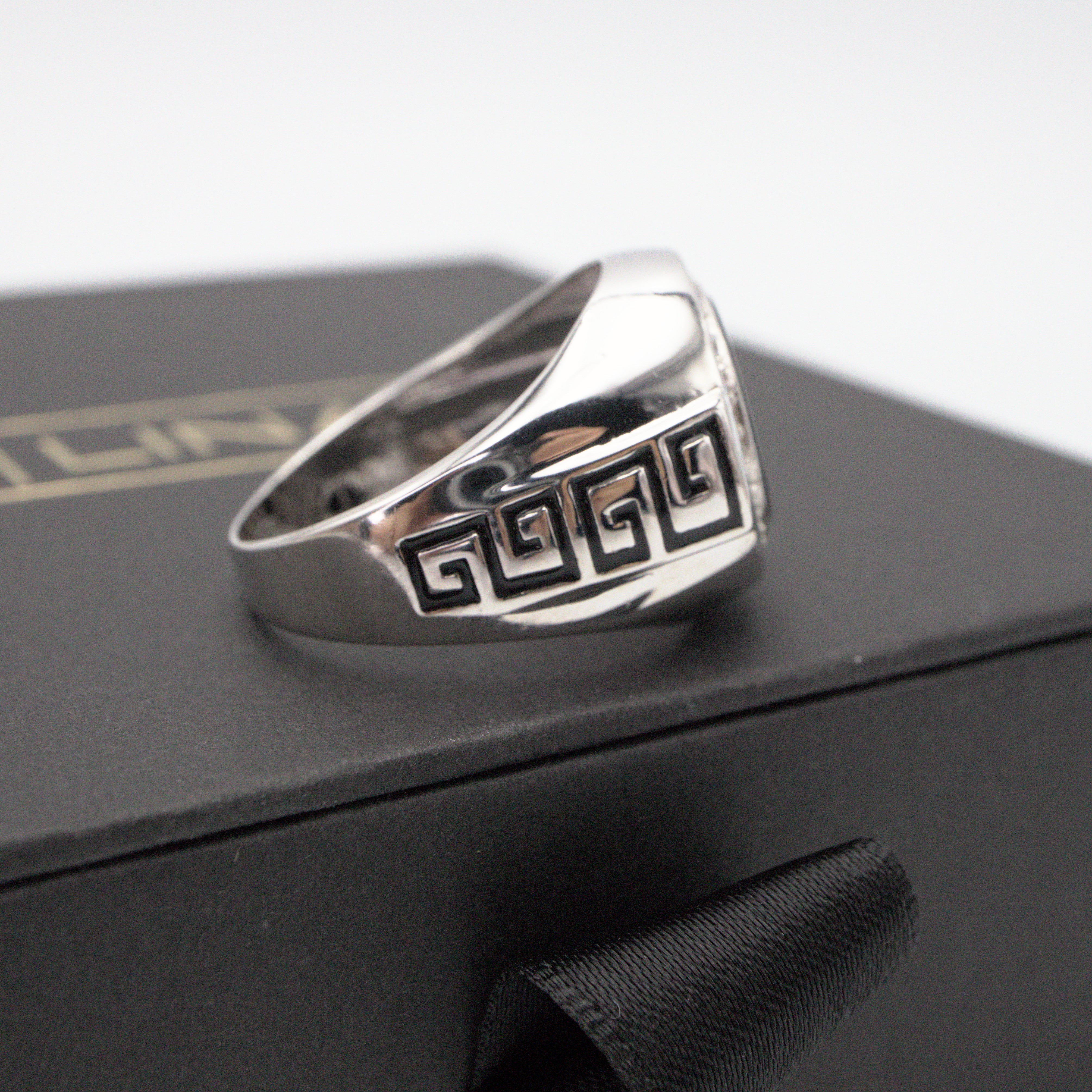 Dive into the timeless elegance of our Silver Onyx Ring with Greek-inspired detailing. This sterling silver masterpiece showcases a rich onyx centerpiece, exuding sophistication and depth.