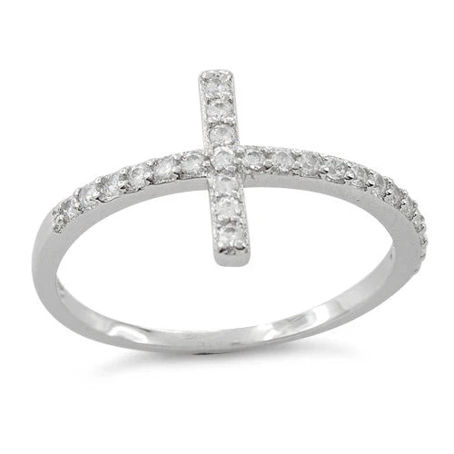 Add a touch of faith and sparkle to your style with this 925 sterling silver cross ring. Crafted from genuine sterling silver, it features a delicate cross design accented with brilliant cubic zirconia stones for a radiant shine.