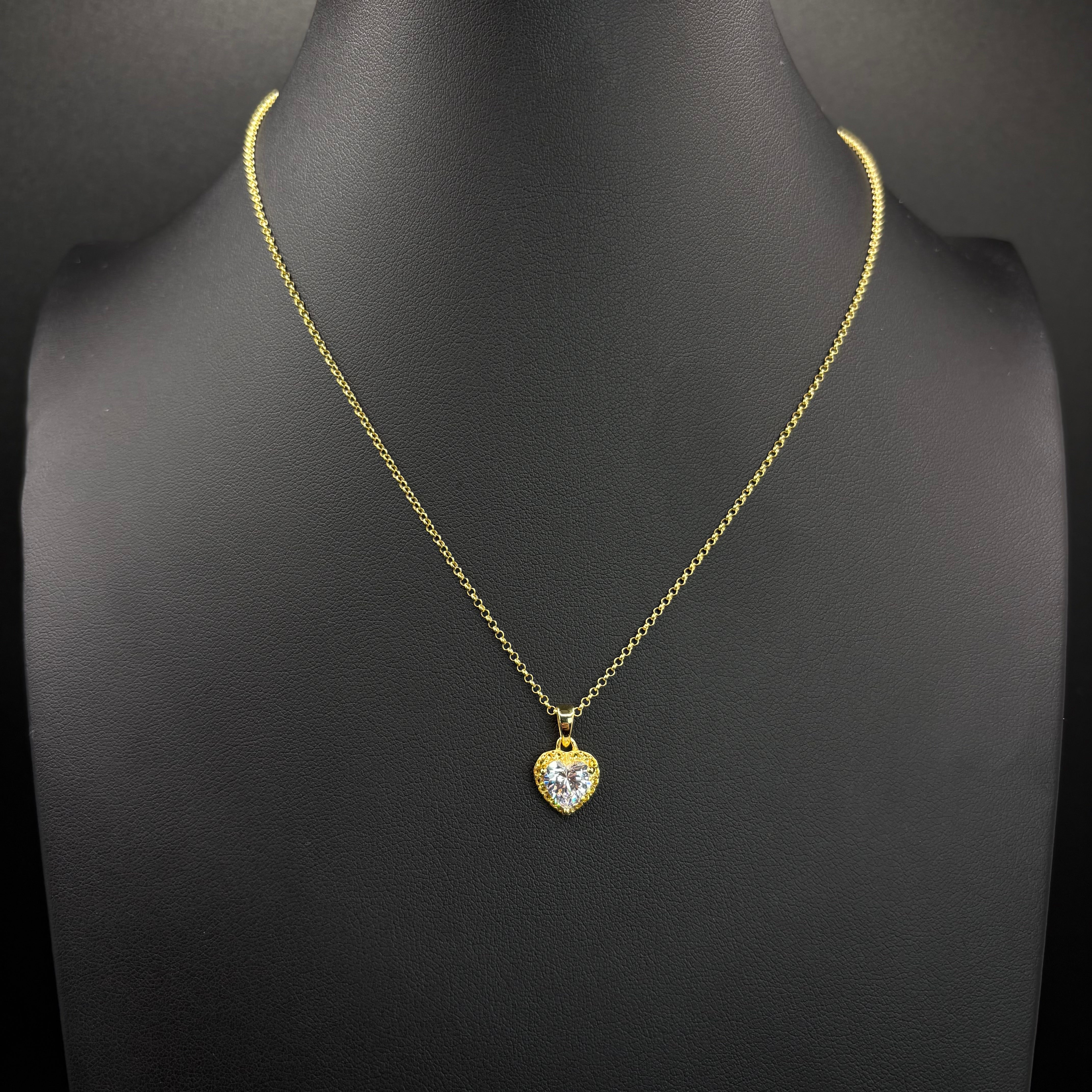 Sterling Silver Gold Plated Small Clear CZ Heart Pendant – .925 Silver