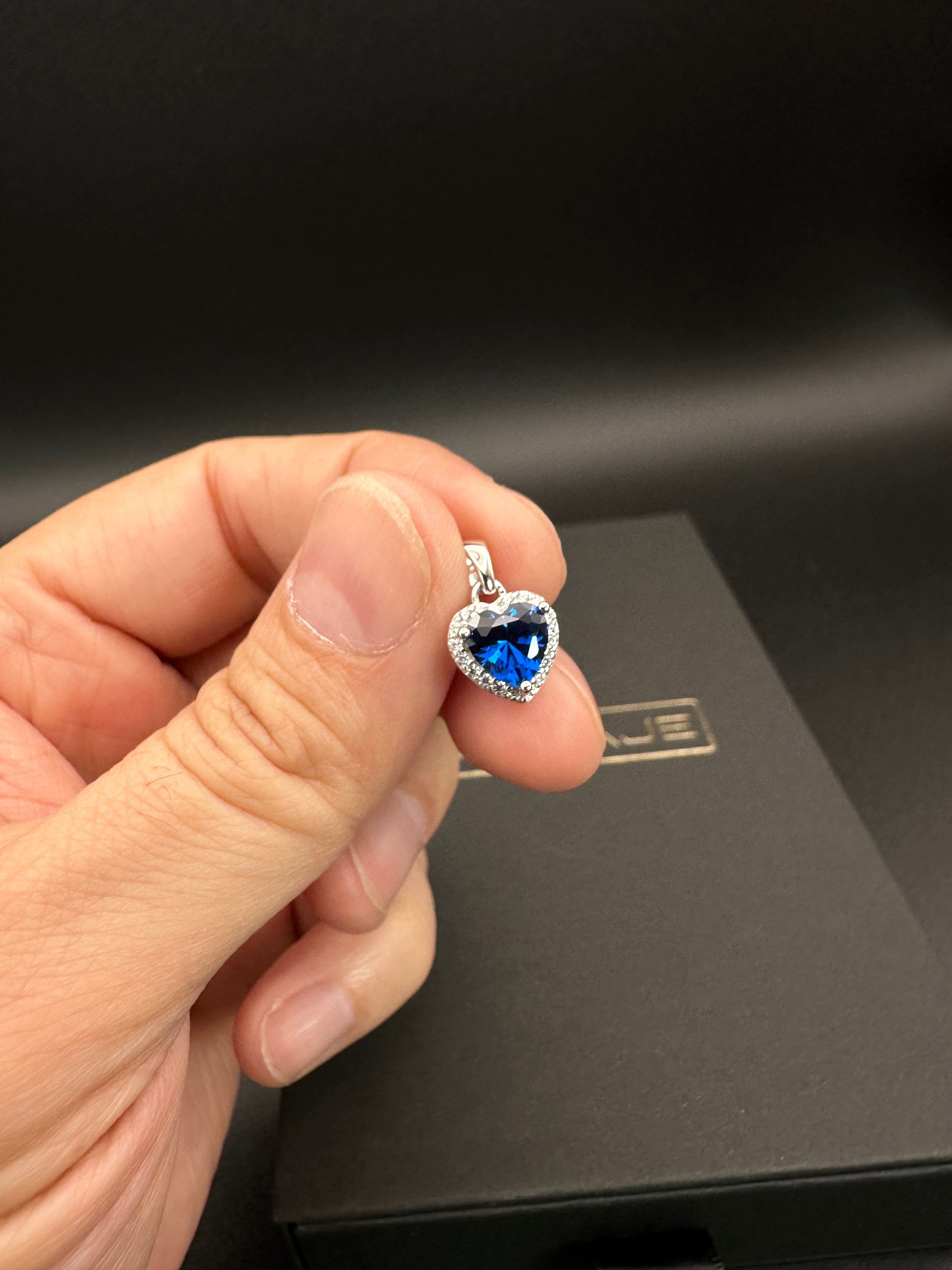 Sterling Silver Heart Shape Blue Sapphire CZ Pendant – .925 Silver, Rhodium Finish