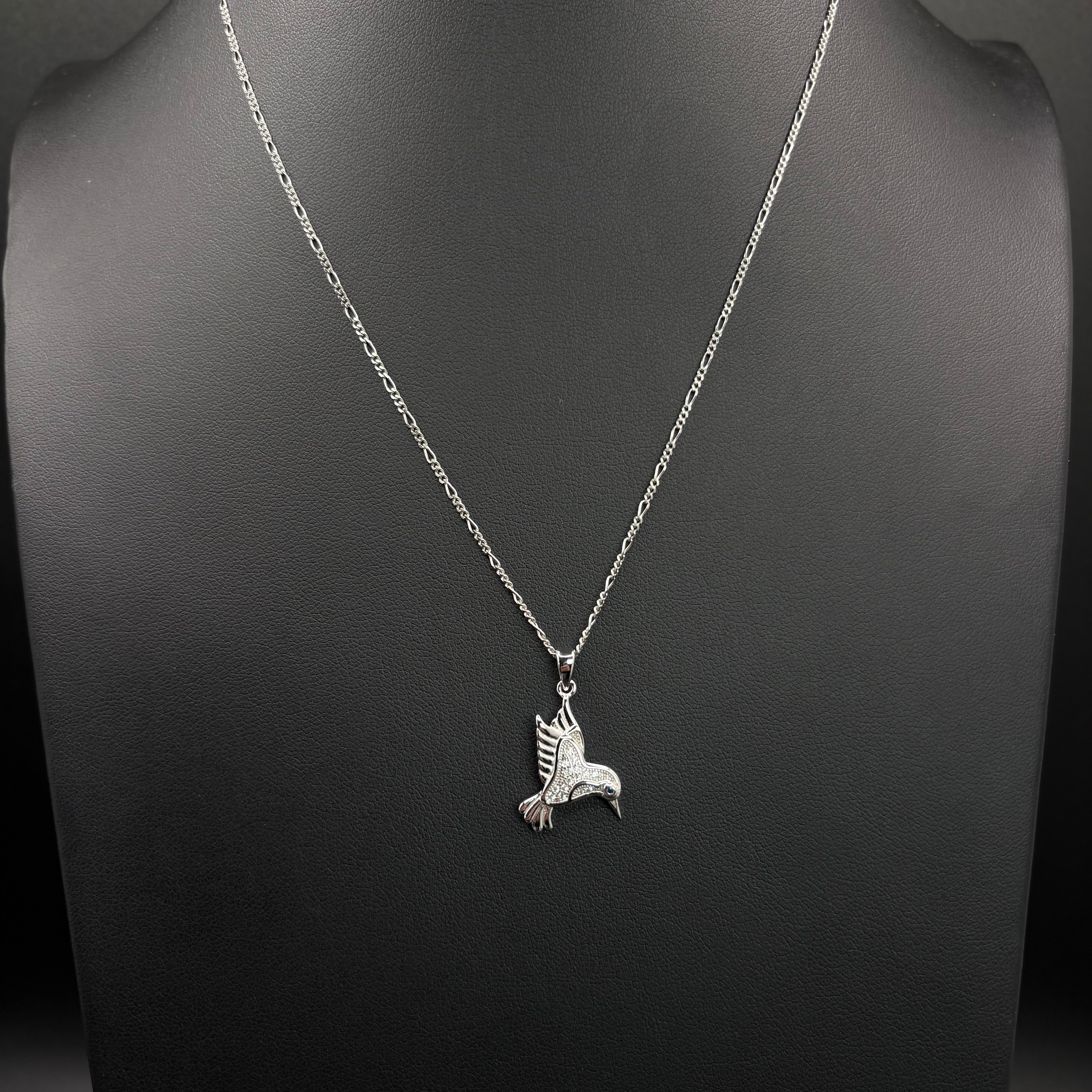 Sterling Silver Hummingbird Blue & Clear CZ Pendant – .925 Silver, Rhodium Finish