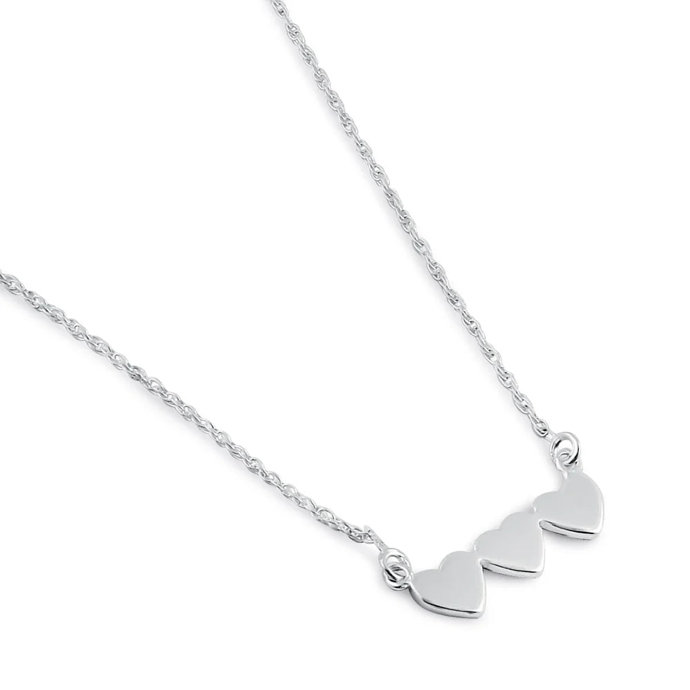 Sterling Silver Triple Heart Necklace – .925 Silver, Rhodium Finish