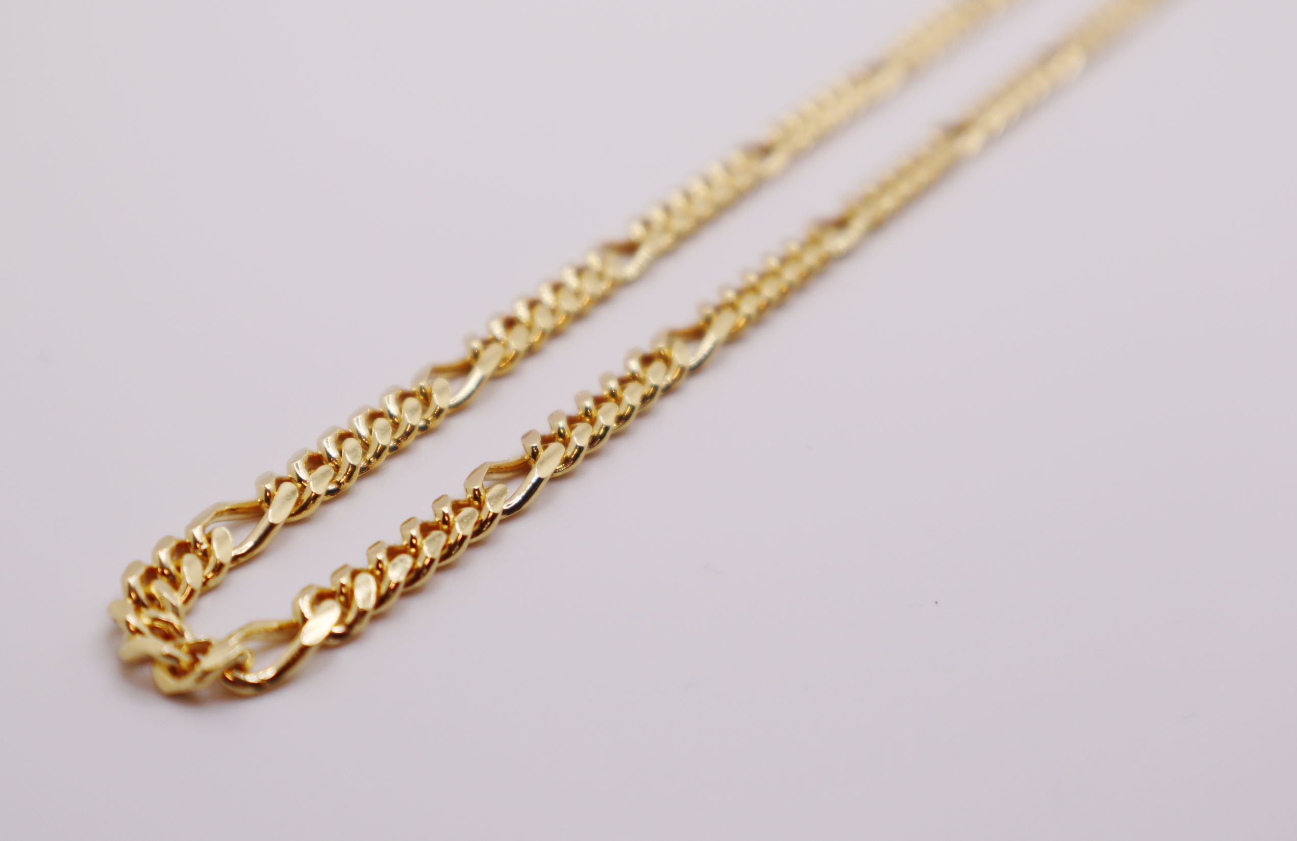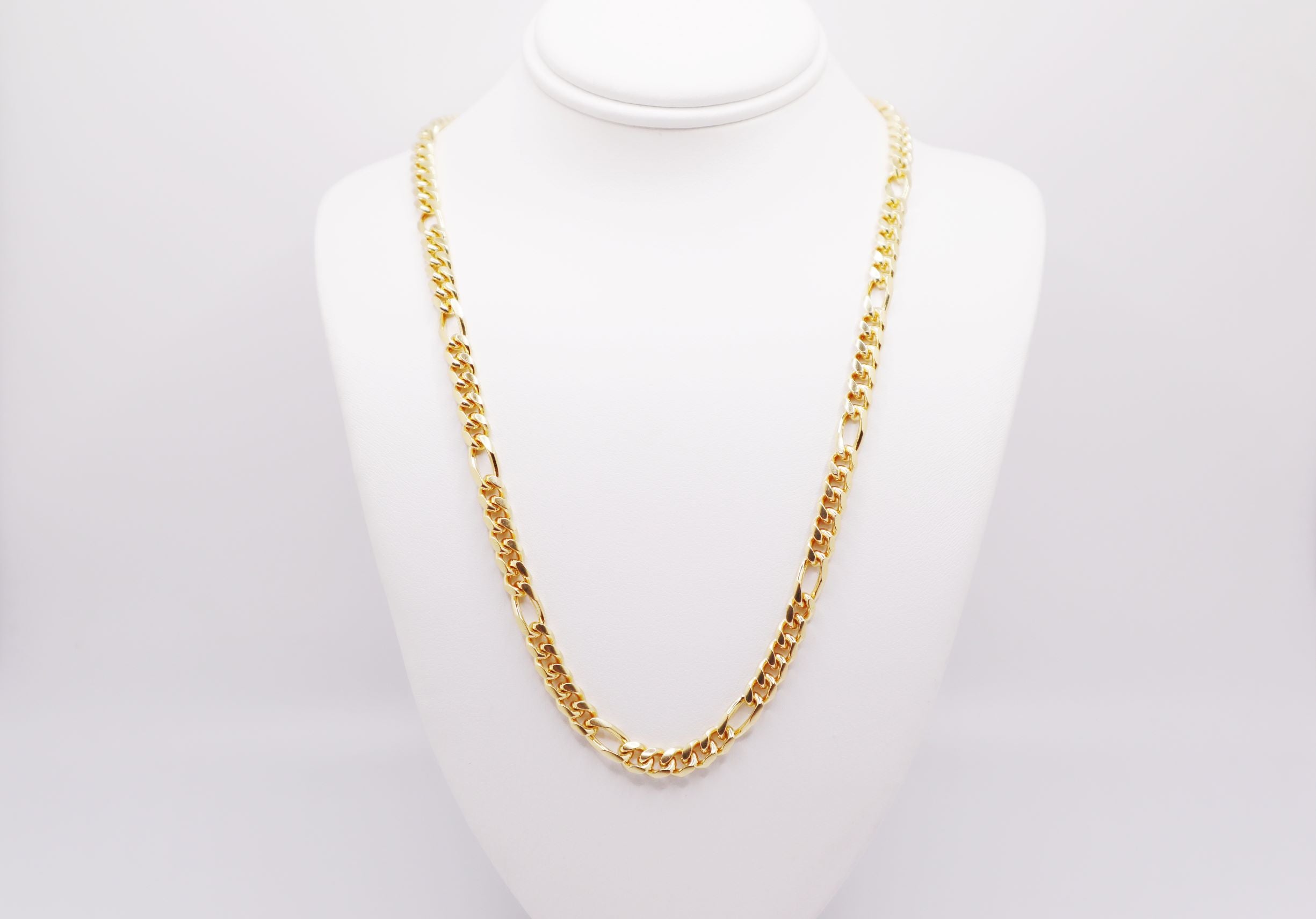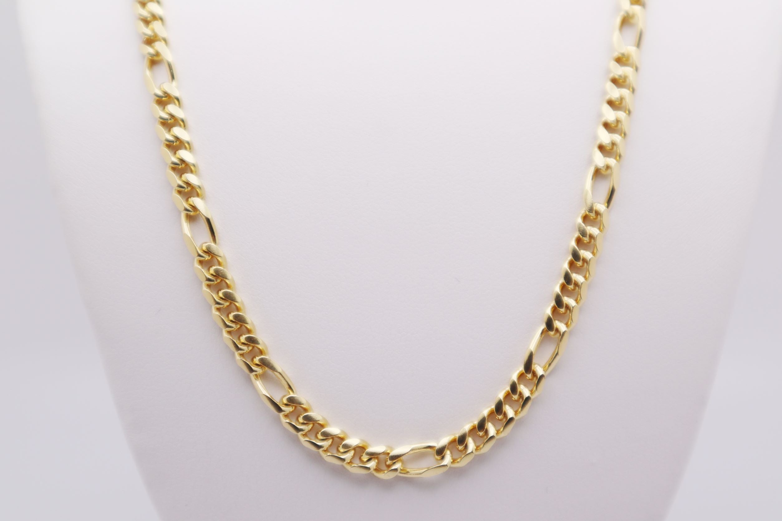 5mm Cuban Figaro Link Silver Chain Gold Plated