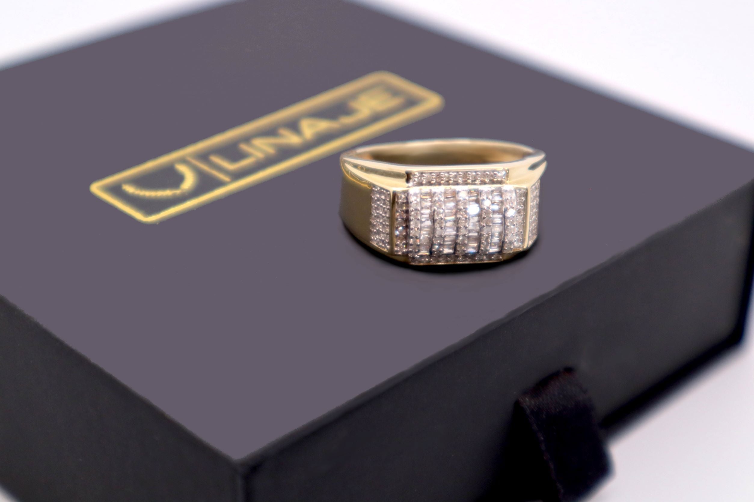 One of our newest additions to the Linaje Jewelry line. This piece is made from 10K REAL gold and iced out wit .55 carats of REAL diamonds. This piece is definitely an eye catcher and a must in any diamond collection. Avg. weight is 6.5 grams. Available with engraving on the side. Please allow 2-3 days for sizing and processing and an additional 2-3 days for delivery.