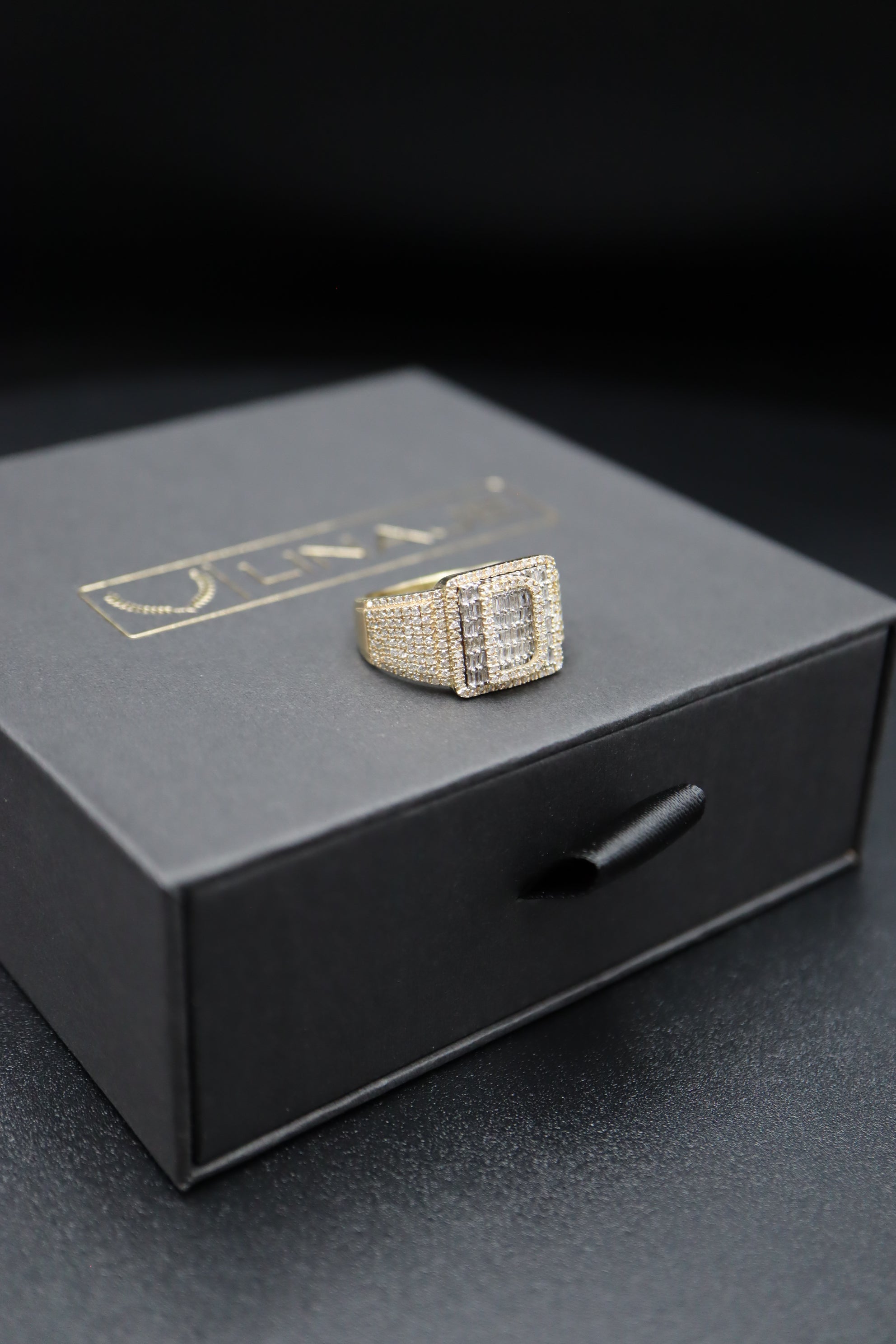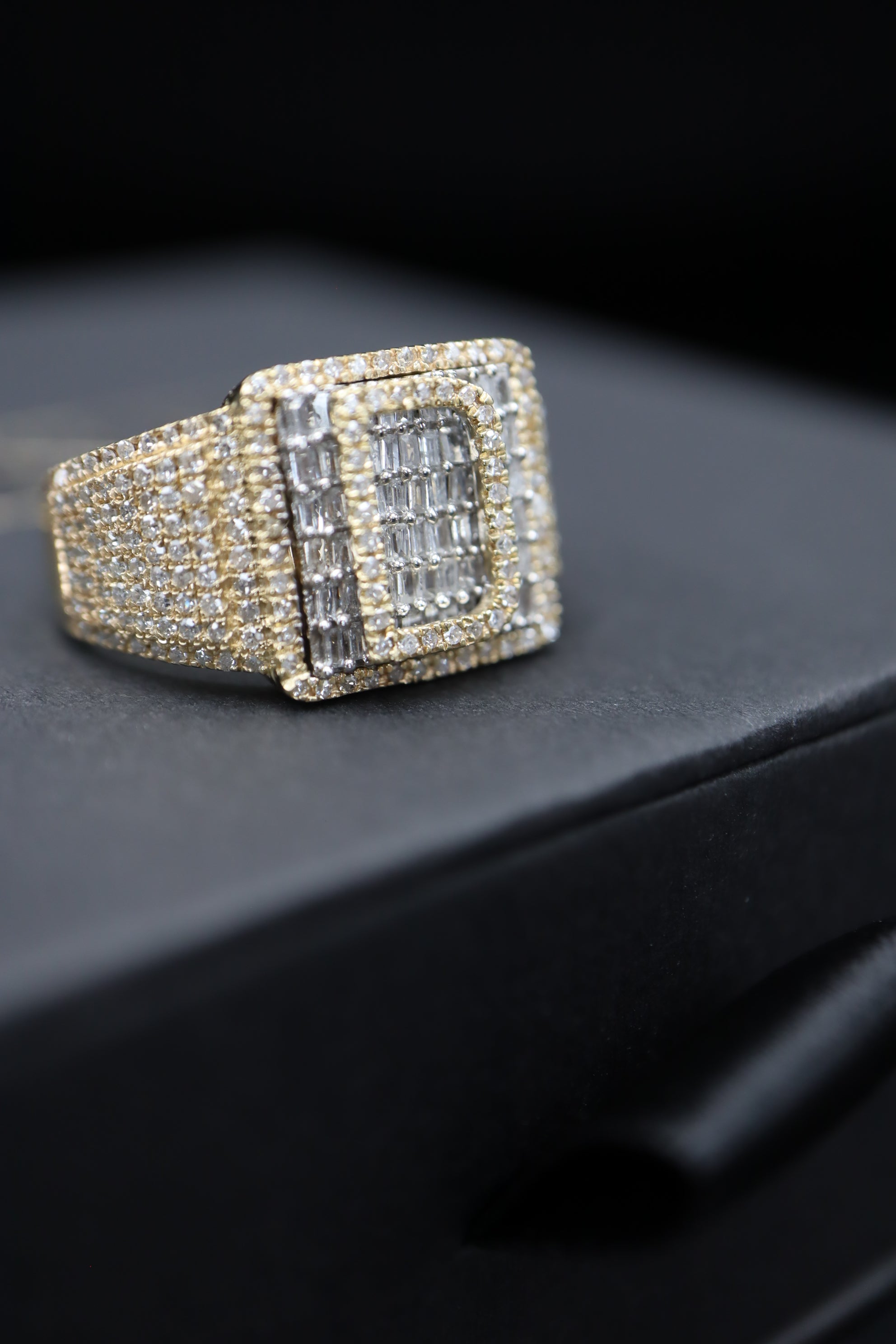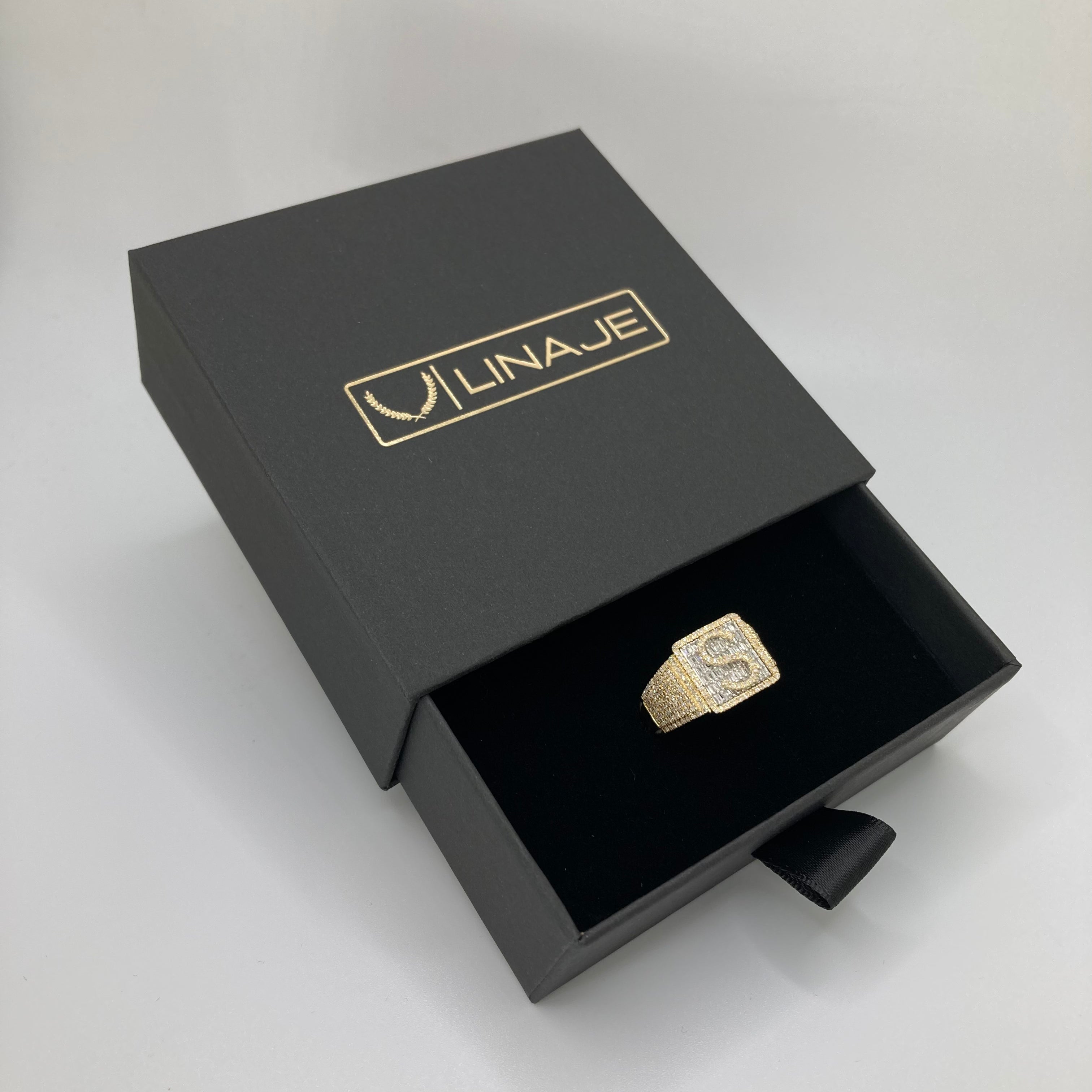 Stunning custom initial diamond ring featuring baguette and round diamonds. Made from REAL 10k gold and featuring REAL natural diamonds, NO lab & NO moissanite.