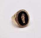 Unveiling our Onyx San Judas Ring – a powerful symbol of faith and protection meticulously crafted from premium 14K gold. This exceptional ring features a deep, rich onyx stone, adding an element of sophistication and mystery to your style. The intricate detailing showcases the revered image of St. Jude, offering not just a piece of jewelry, but a meaningful connection to your spirituality.