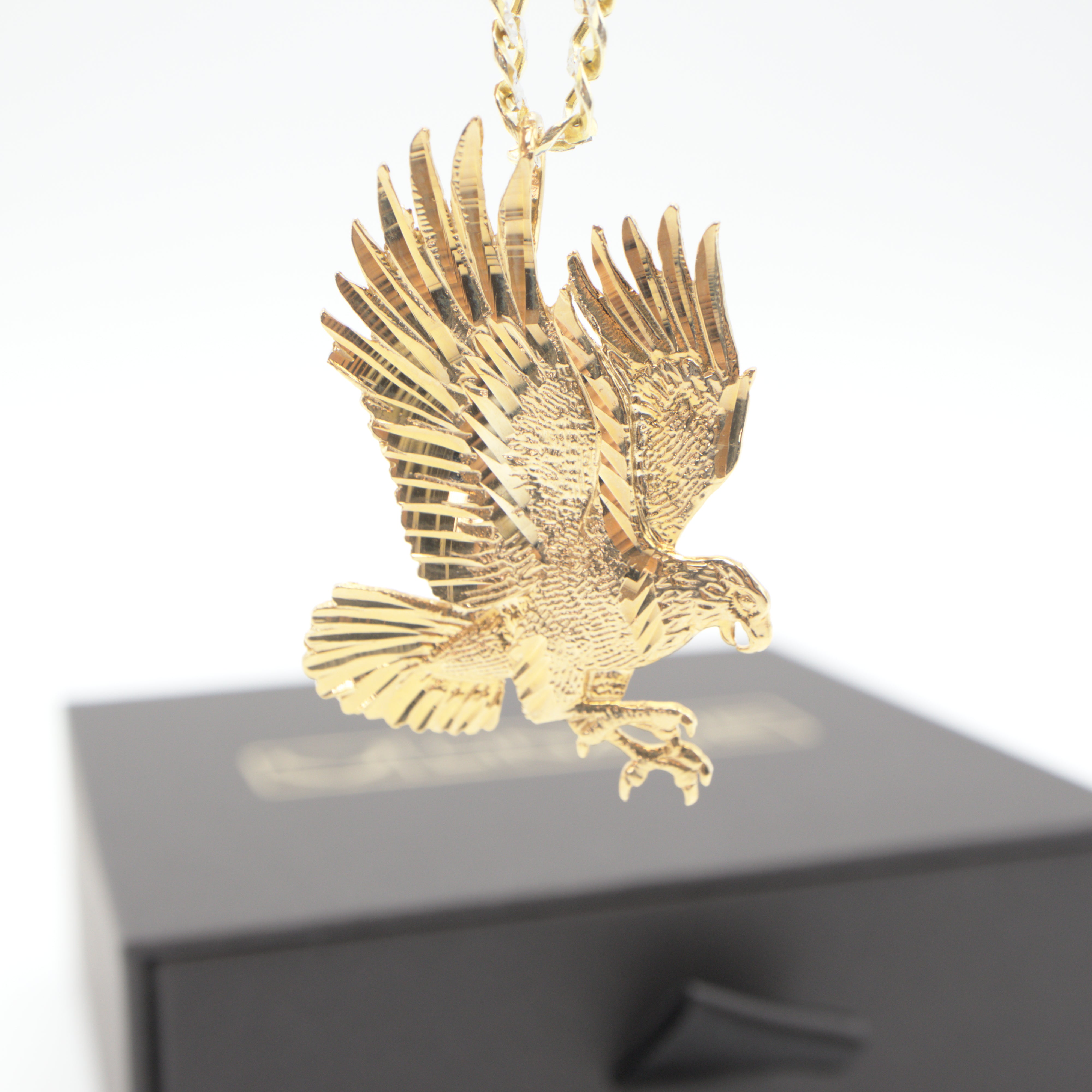 Soar to new heights of style with our 14K Gold Eagle Pendant, a tribute to your Mexican heritage and the enduring spirit of the eagle.