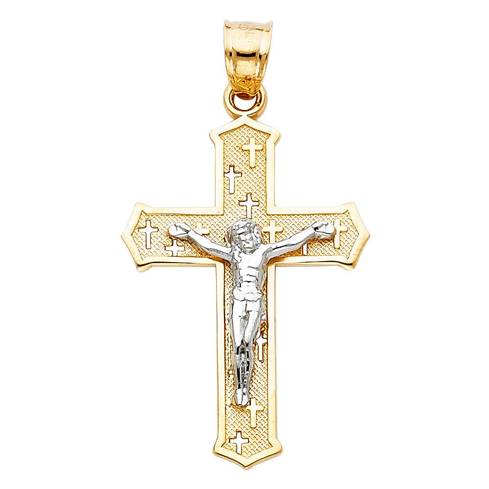 Very detailed small 14k gold Jesus crucifix. This piece is made in 14k gold and stamped. Measures 30mm in height and 19mm in width and averages out to 1.6 grams of gold. Perfect for an everyday pendant. Please allow 2-3 business days to process and 2-3 additional business days for delivery.