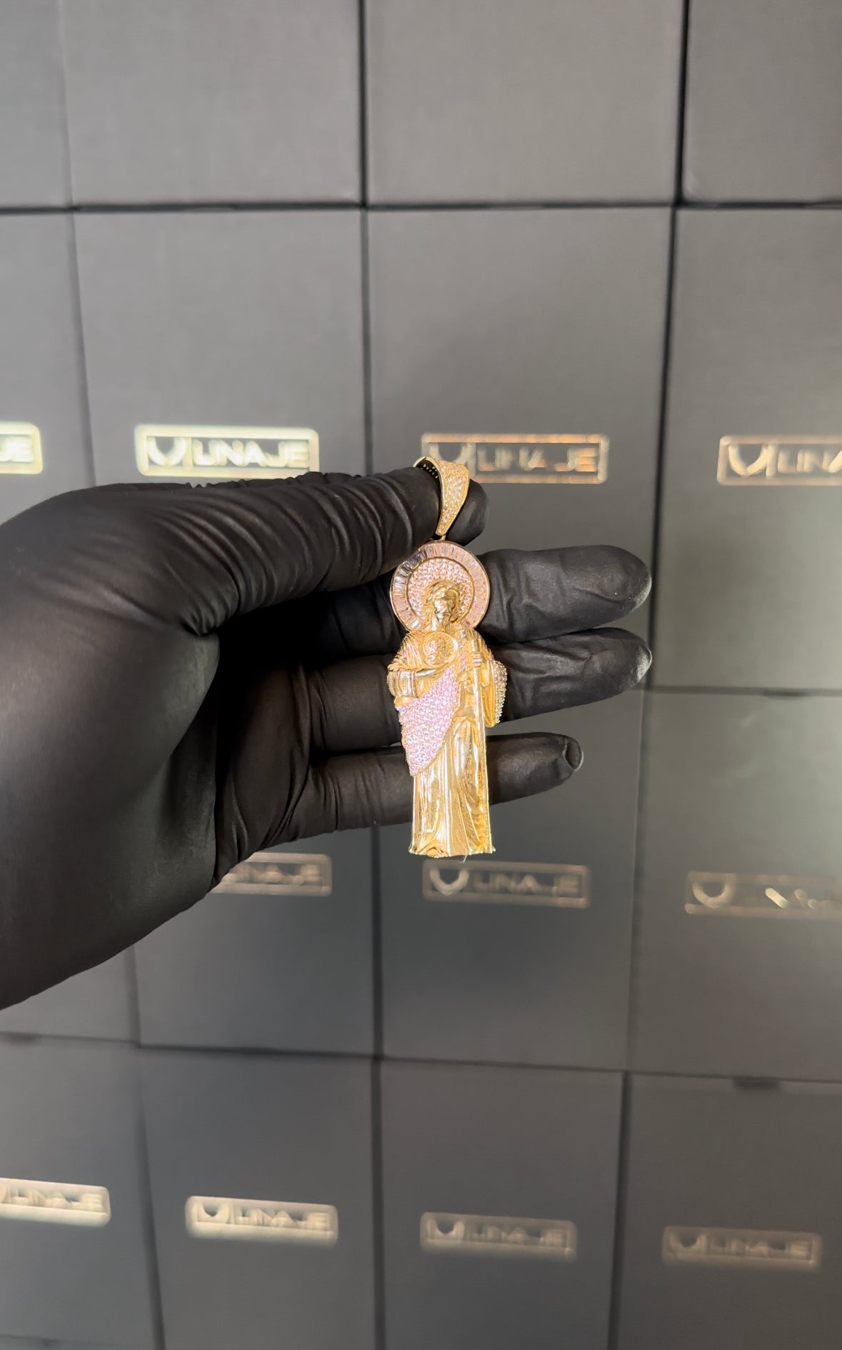 San Judas grande hecho de oro 14 kilates y zirconias.