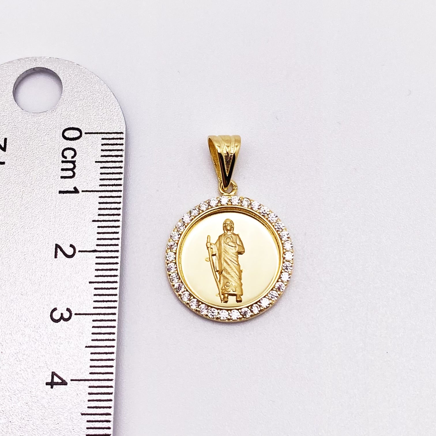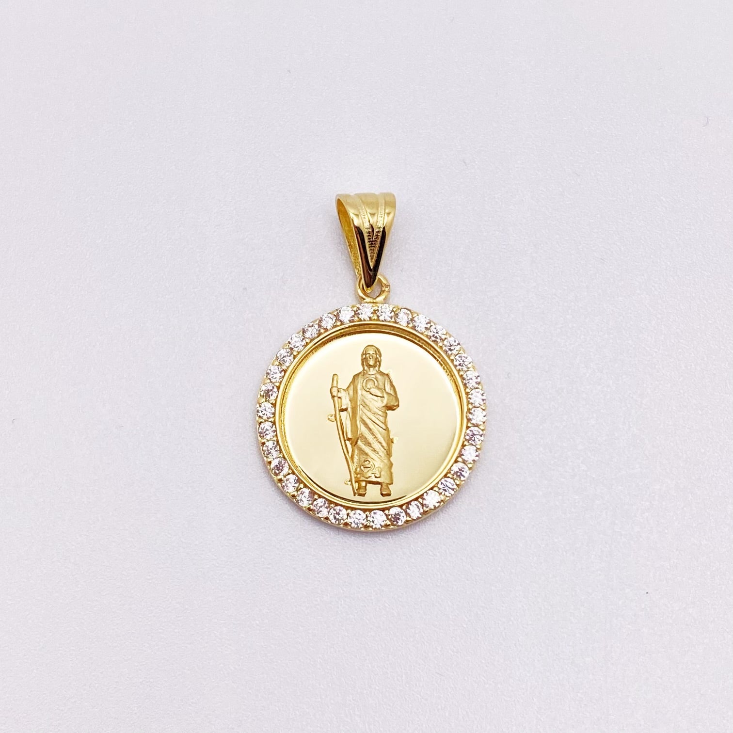 New San Judas pendant showcasing Cubic Zirconias. Made from 14K gold and stamped this piece is perfect for a gift.