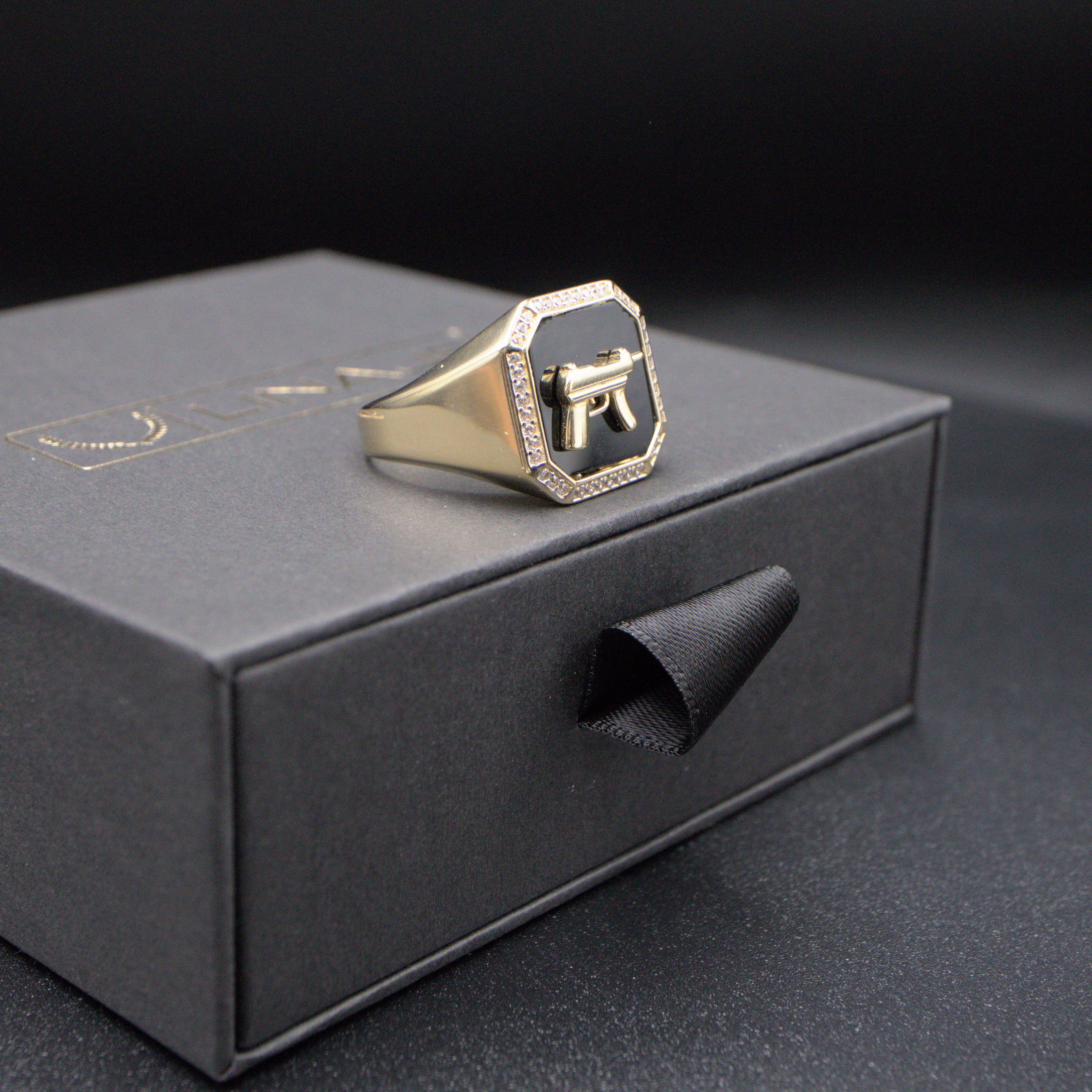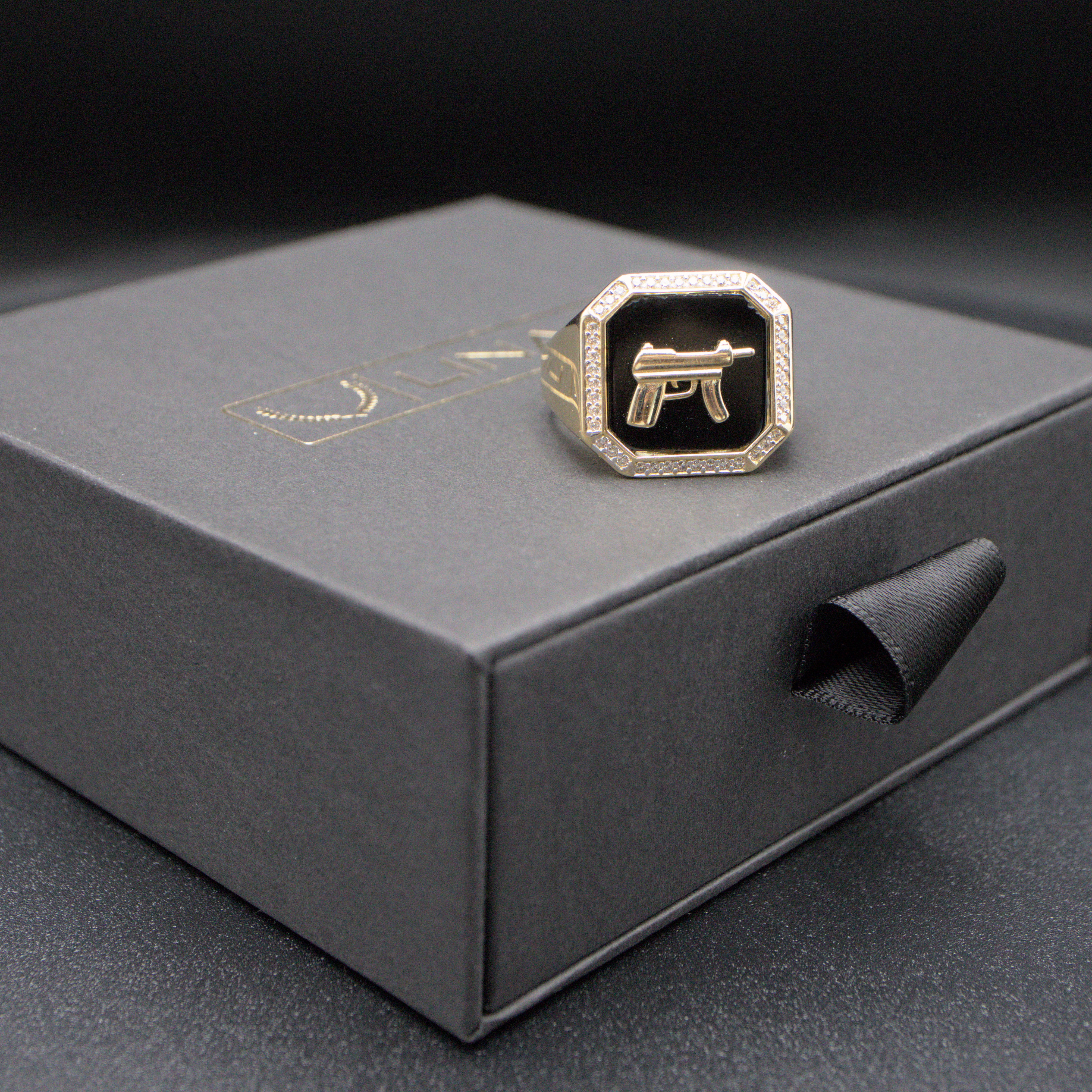 Demonstrate your Belico side with this 14K gold ring. Encrusted with high brilliance cubic zirconias and made with 14K gold.