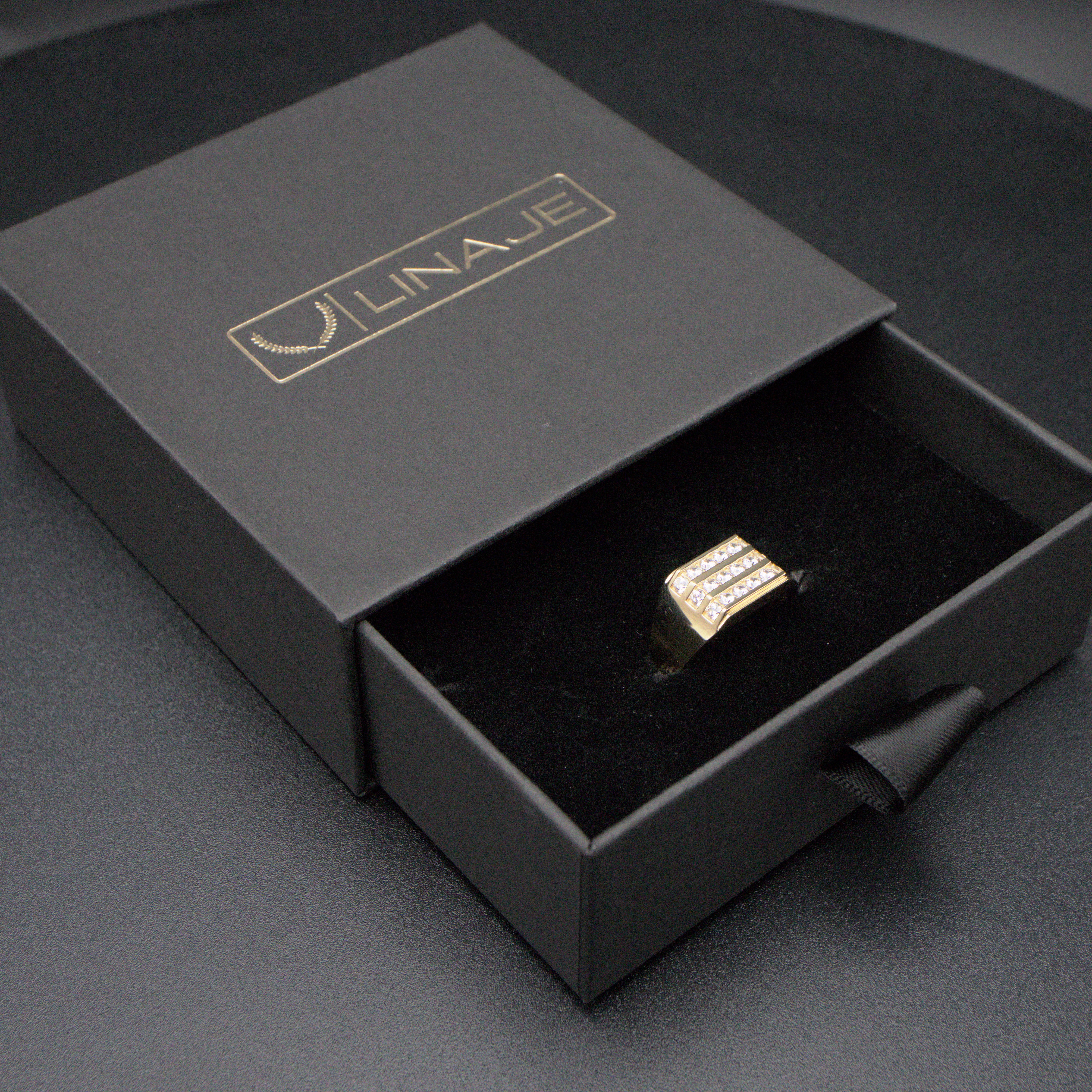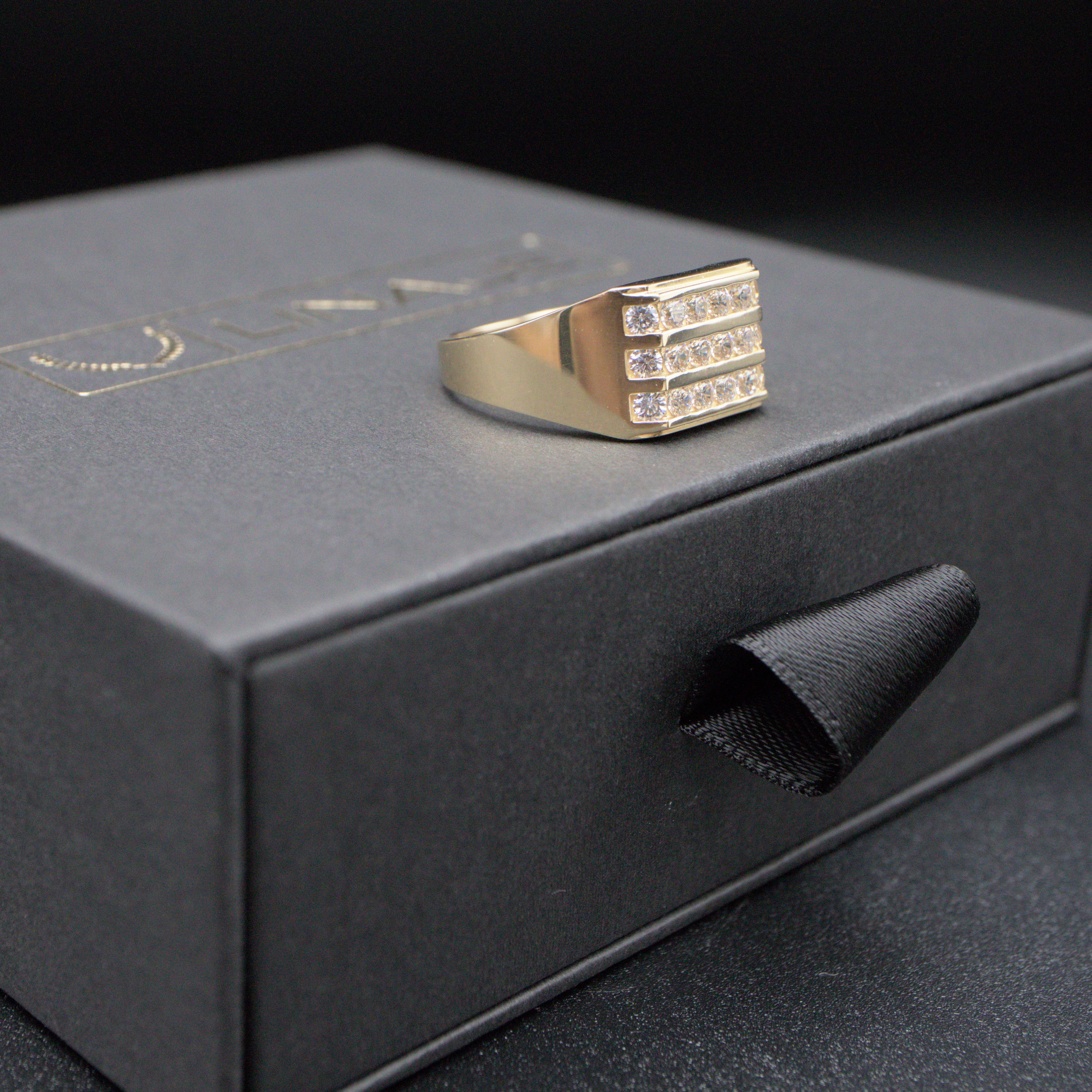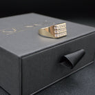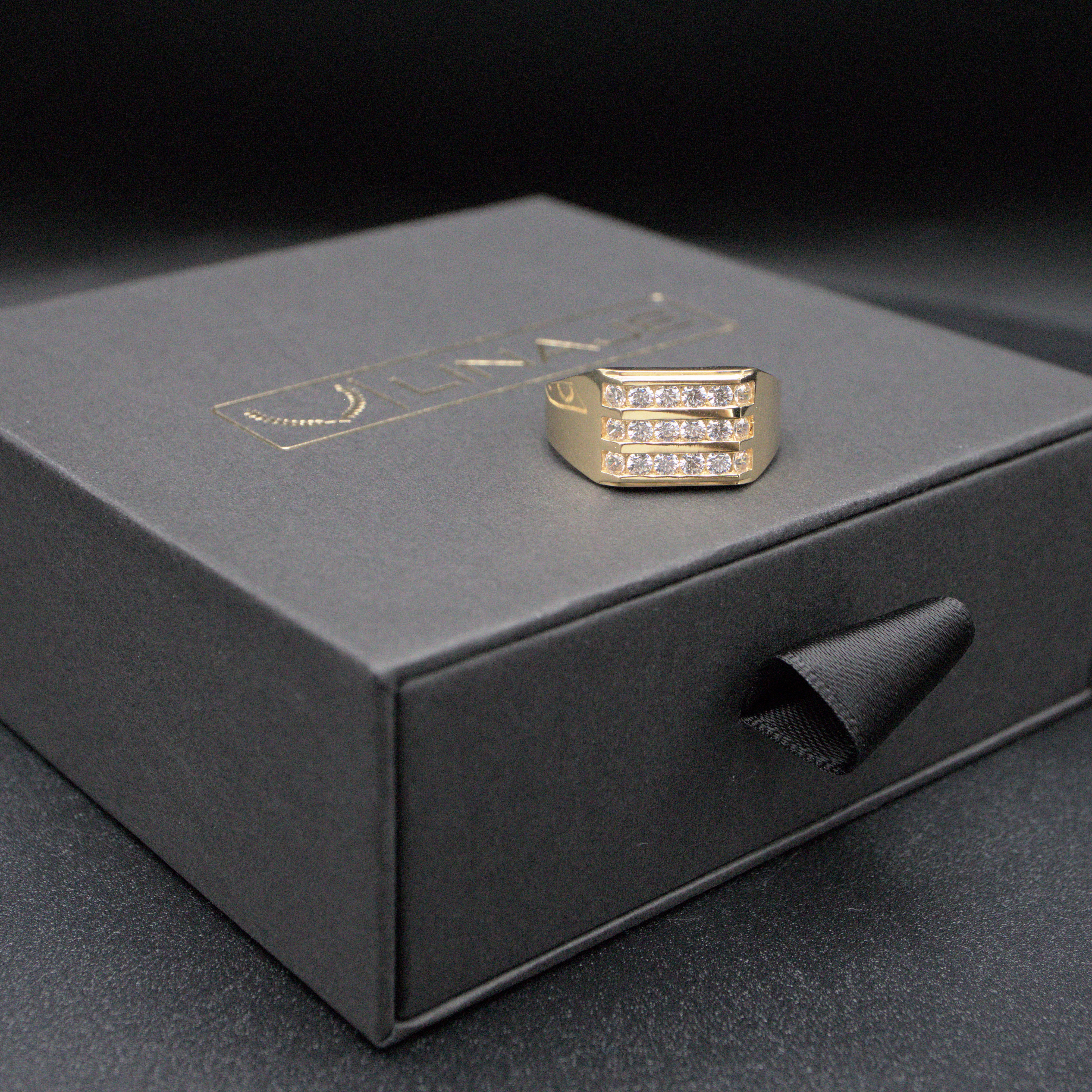 Crafted with meticulous precision, this exquisite ring features rows of glistening CZ stones set in radiant 14K gold.