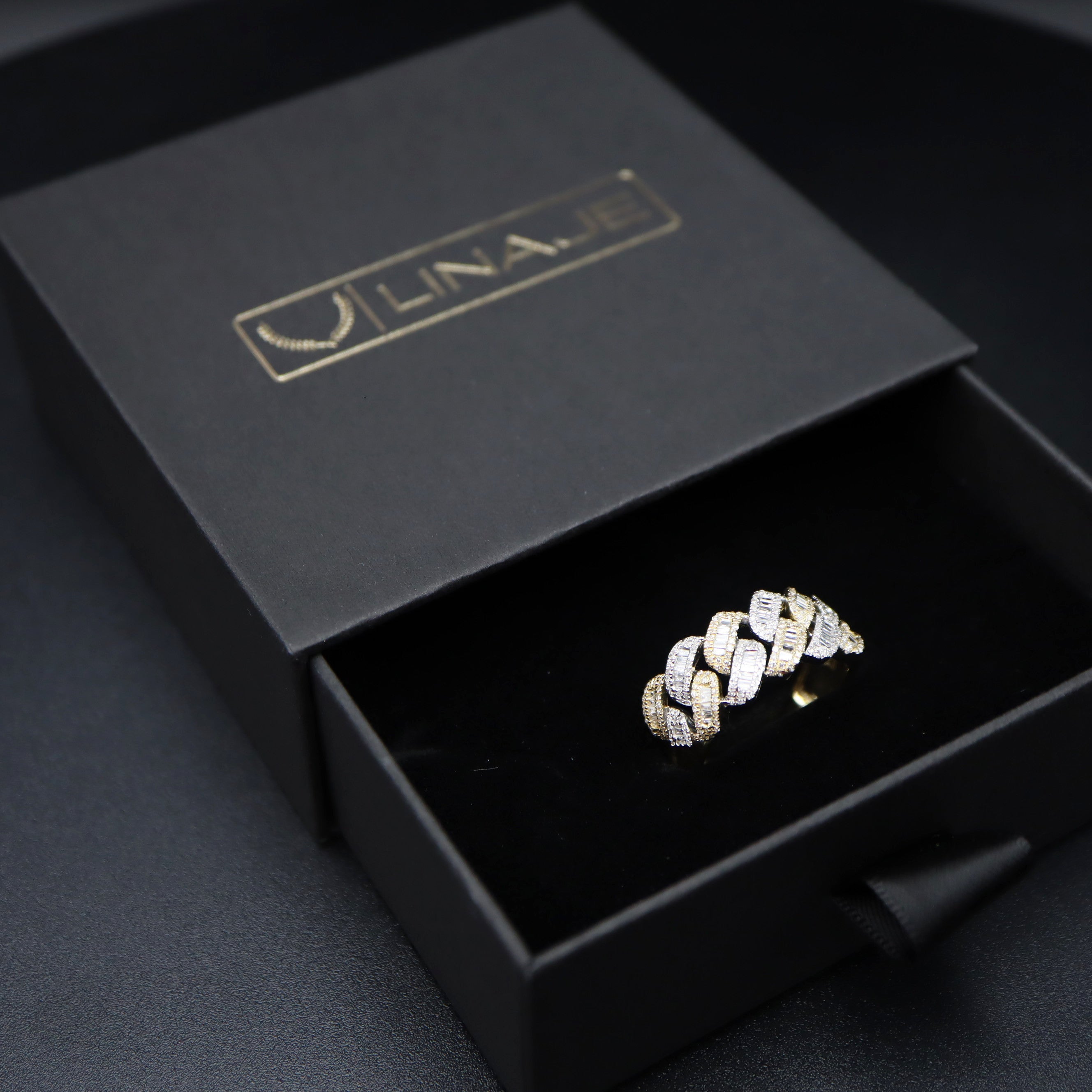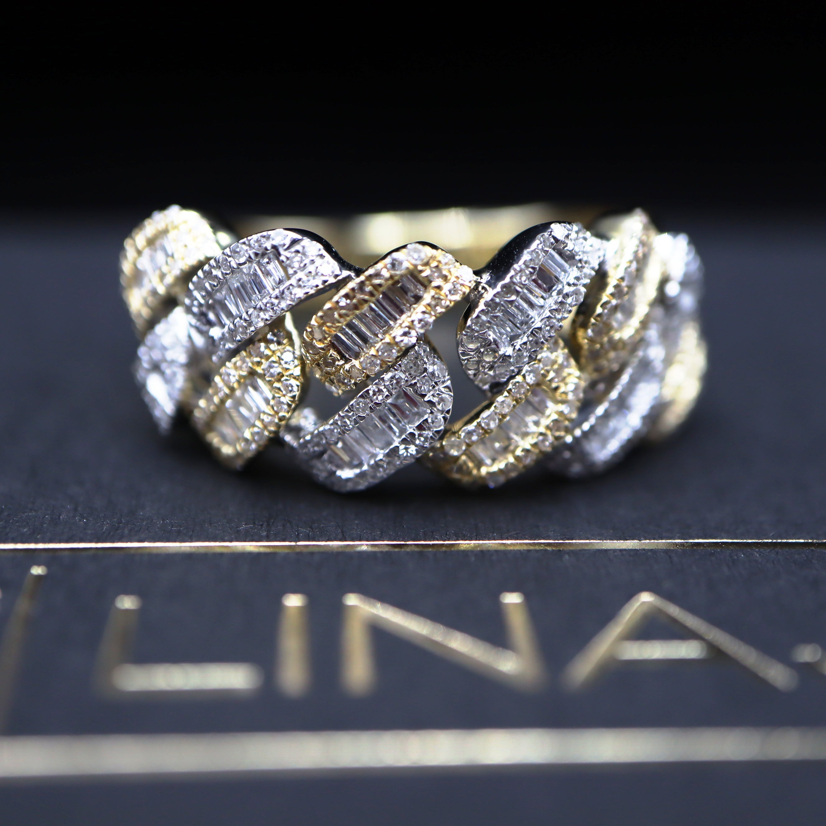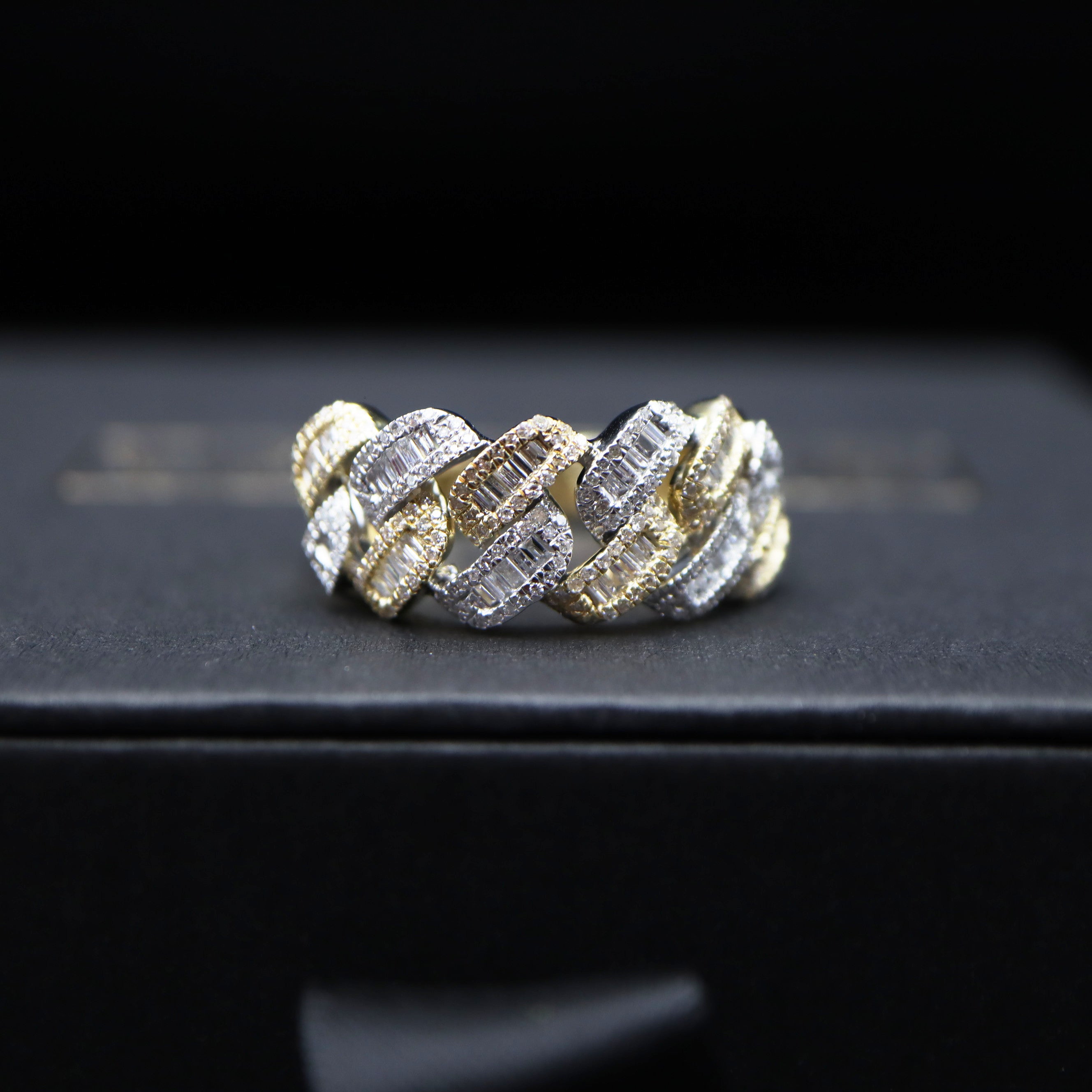 Cuban Baguette Diamond Ring 10K Two Tone