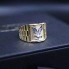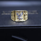 Crafted in 14k gold with a stunning white gold eagle centerpiece, this ring is a symbol of strength and sophistication. Perfect for those who soar above the rest. ✨