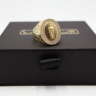 Crafted from 14K gold, the San Judas ring is also a testament to quality and durability. The band is solid and sturdy, ensuring that the ring will last for years to come.