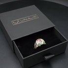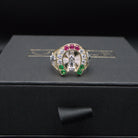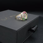 Embrace the divine beauty of faith with our 14K Gold Virgencita Ring, adorned with radiant red, white, and green CZ stones.