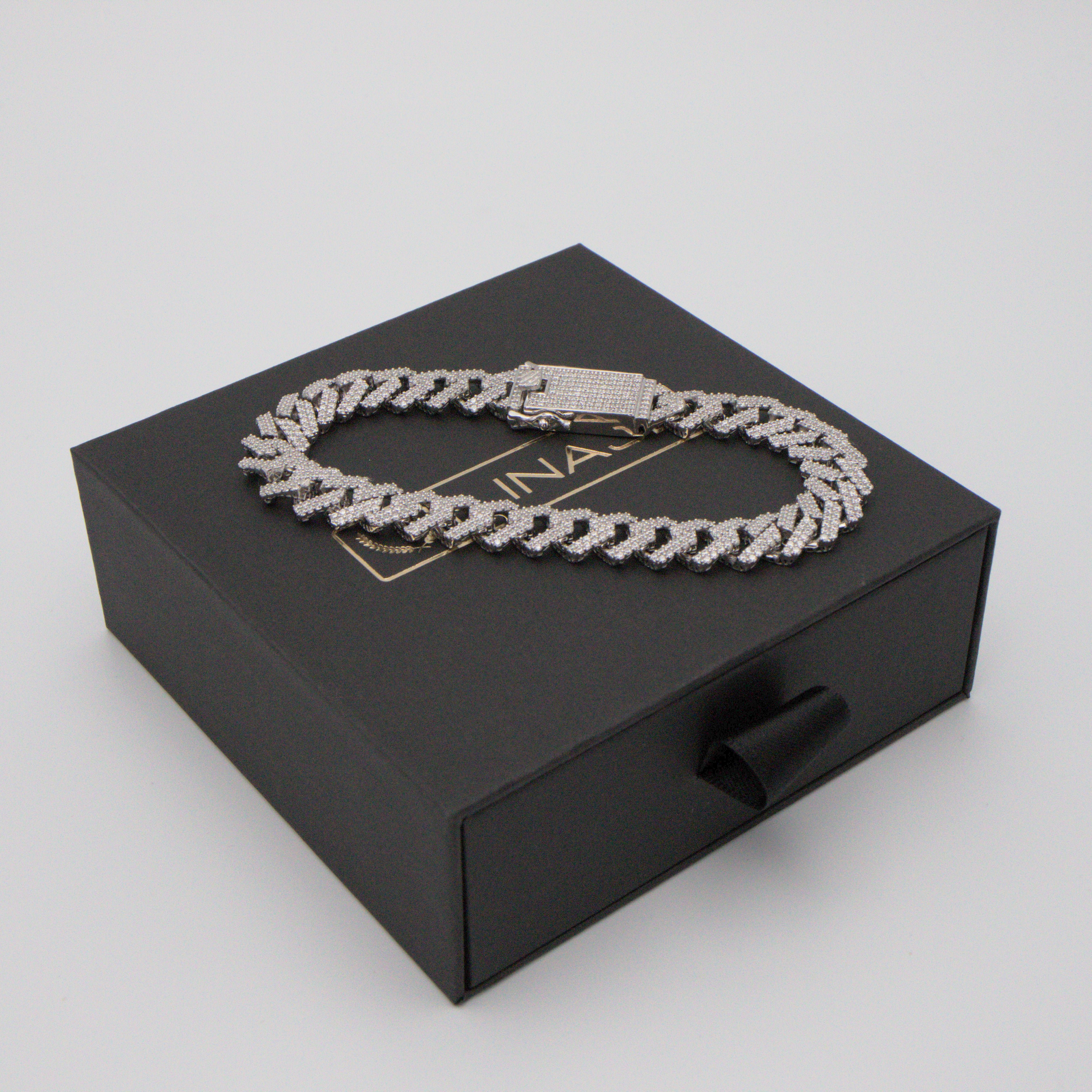 Adorn your wrist with the bold elegance of our 10mm Cuban Link Bracelet. Meticulously crafted from sterling silver and embellished with sparkling cubic zirconias, this bracelet is a testament to refined style and versatility. The iconic Cuban link design, combined with the shimmering CZs, creates a timeless accessory that effortlessly transitions from casual to formal.