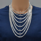 Bold, polished, and built for everyday wear — this 5.2mm Curb Chain is crafted from high-quality sterling silver and features tightly interlocking links for a smooth, durable, and timeless look. Its weight and shine make it a standout piece whether worn alone or layered with other chains.