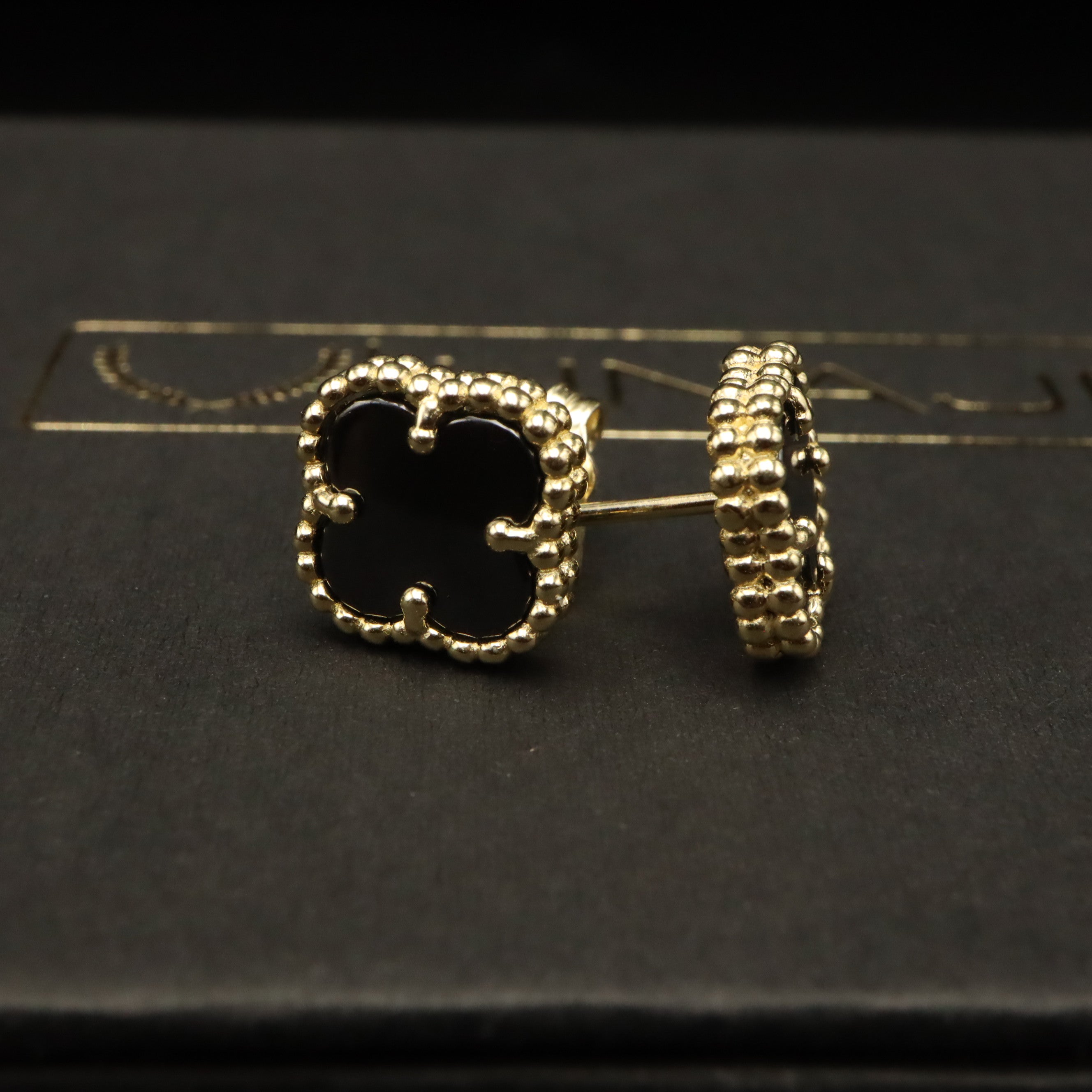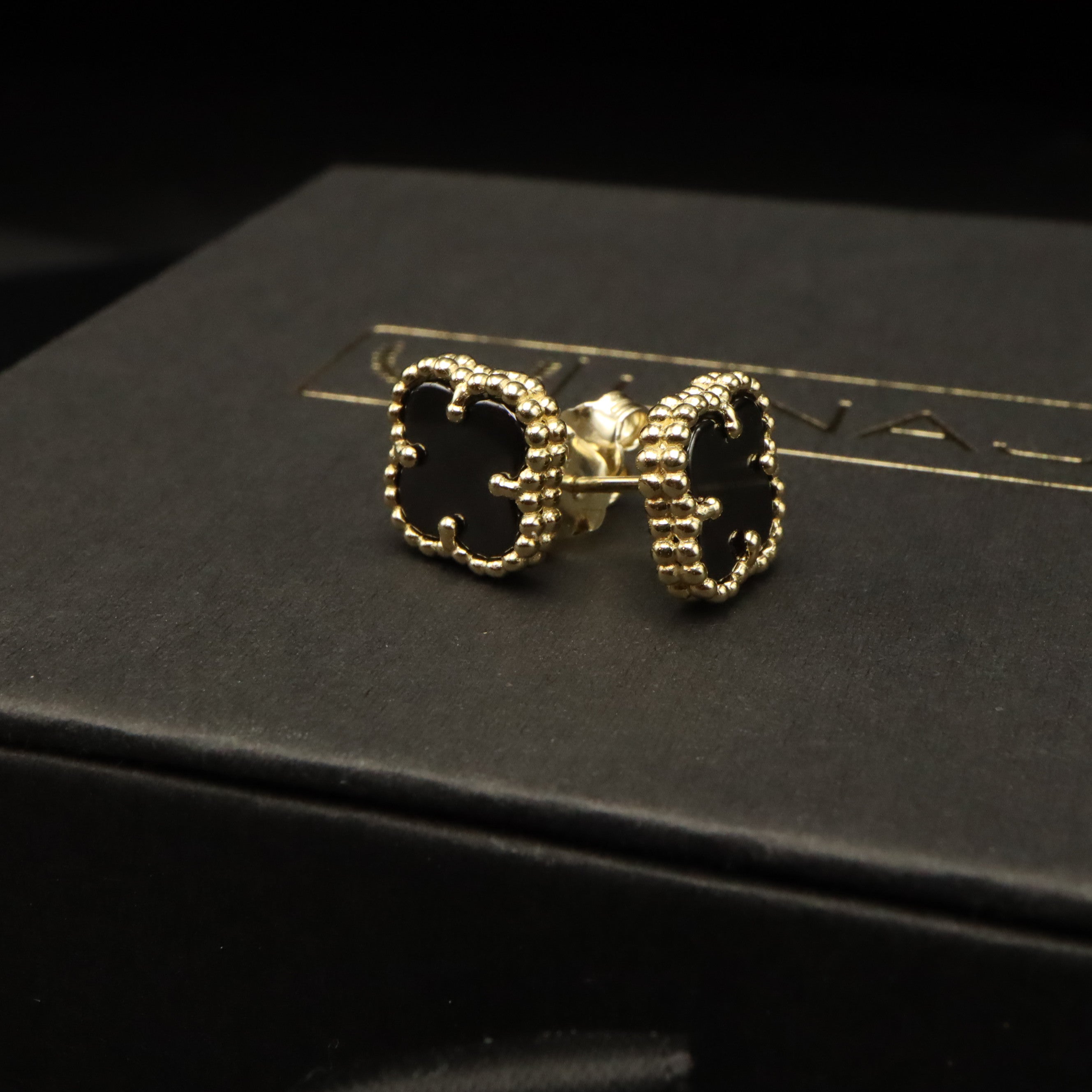 Introducing our exquisite pair of flower-style earrings, crafted in sleek black 10k gold. Elevate your style with these stunning floral earrings, perfect for adding a touch of elegance to any outfit.