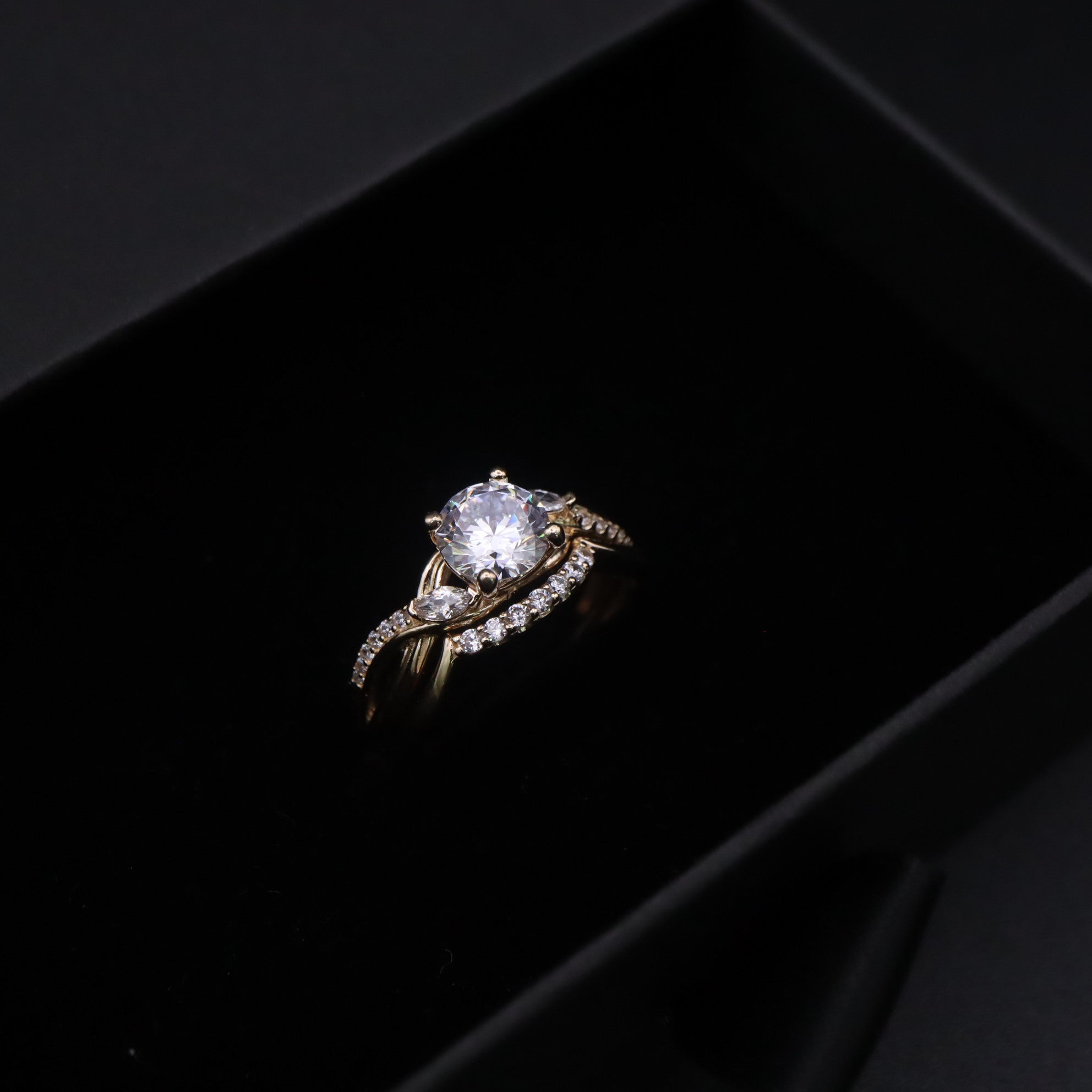 14K Solid Gold CZ Bridal Ring Set – Engagement Ring & Matching Band