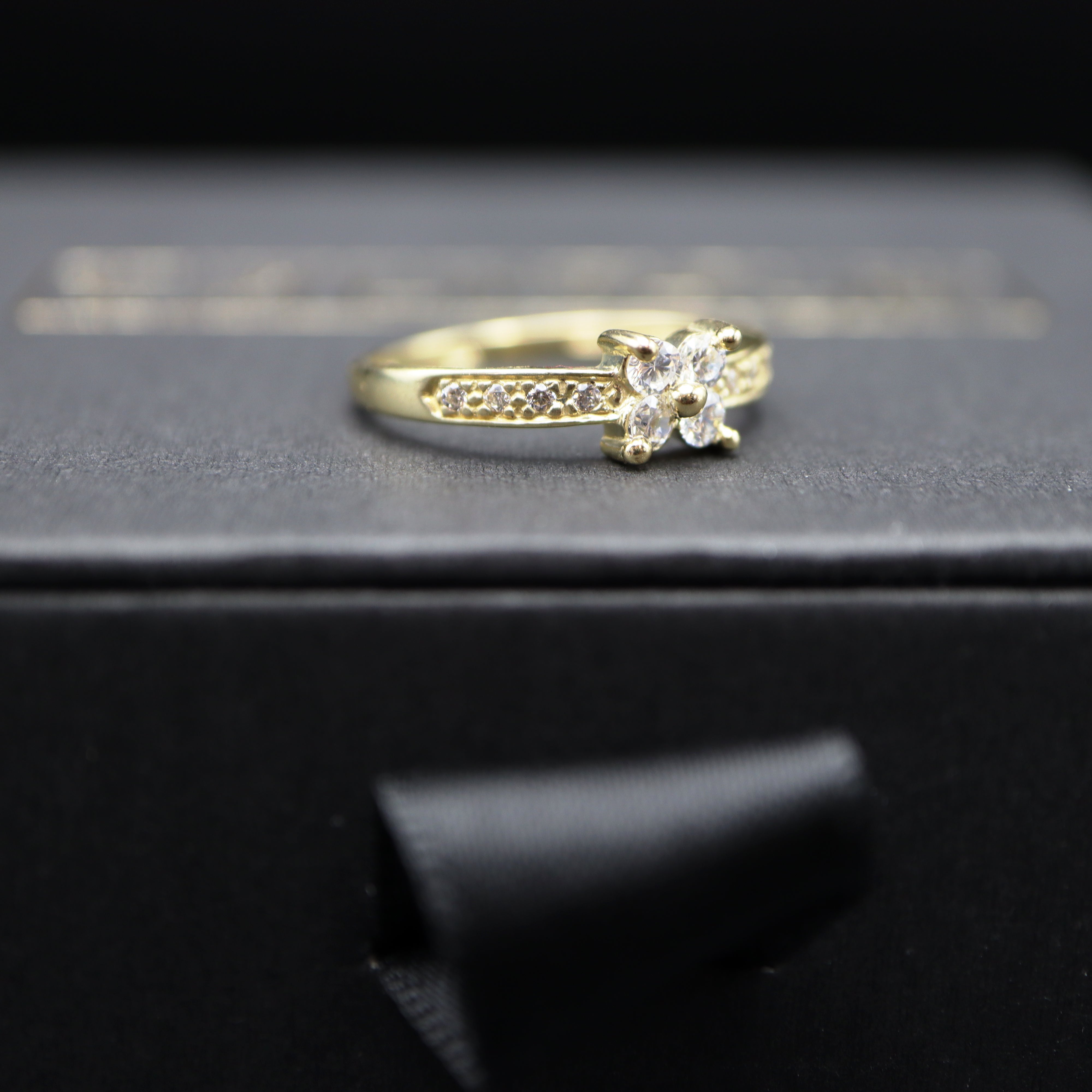 Blossom into beauty with our Women's 10K Gold Flower Ring, a radiant union of nature's grace and elegance. Crafted with precision and adorned with sparkling CZ stones, this exquisite ring captures the essence and beauty of a flower.