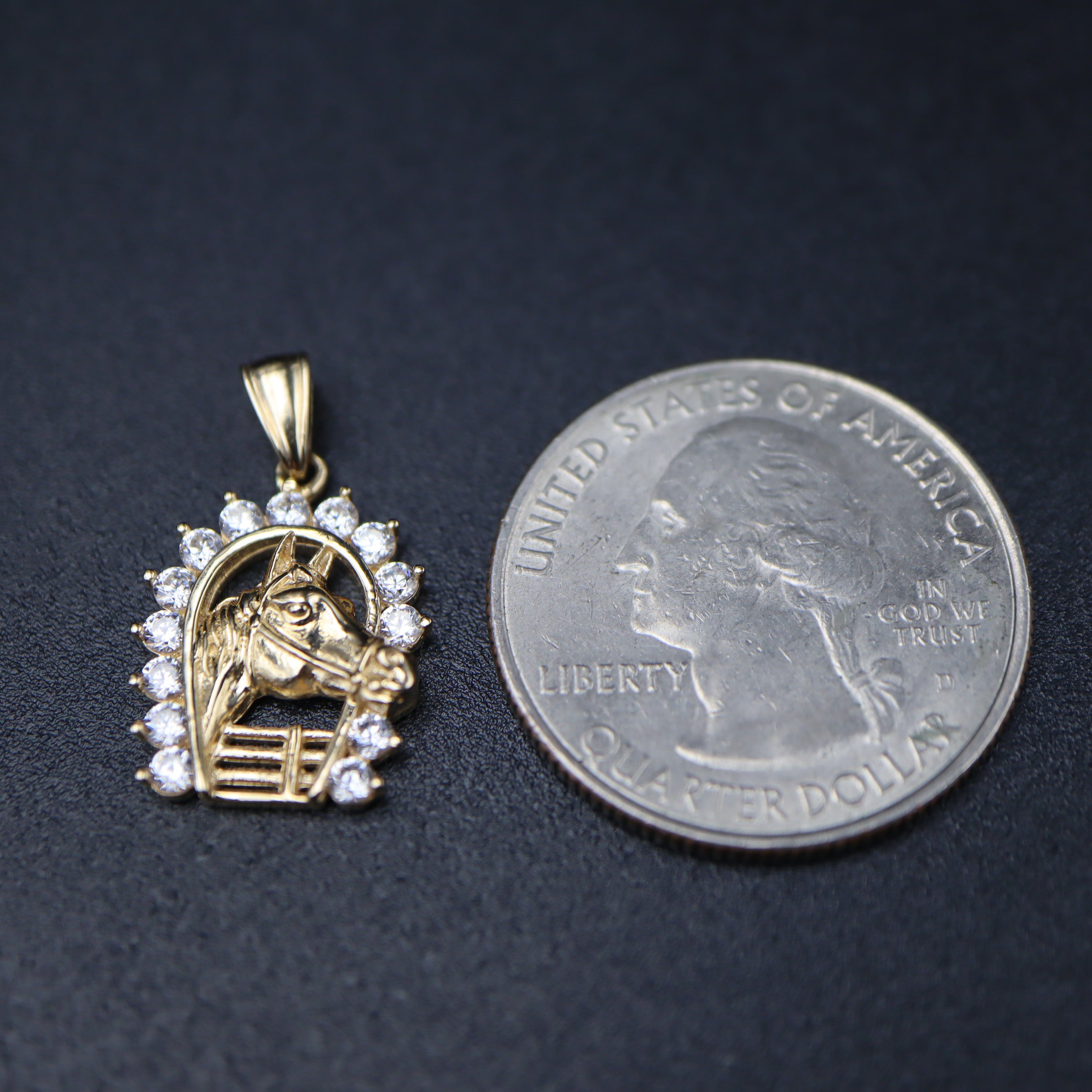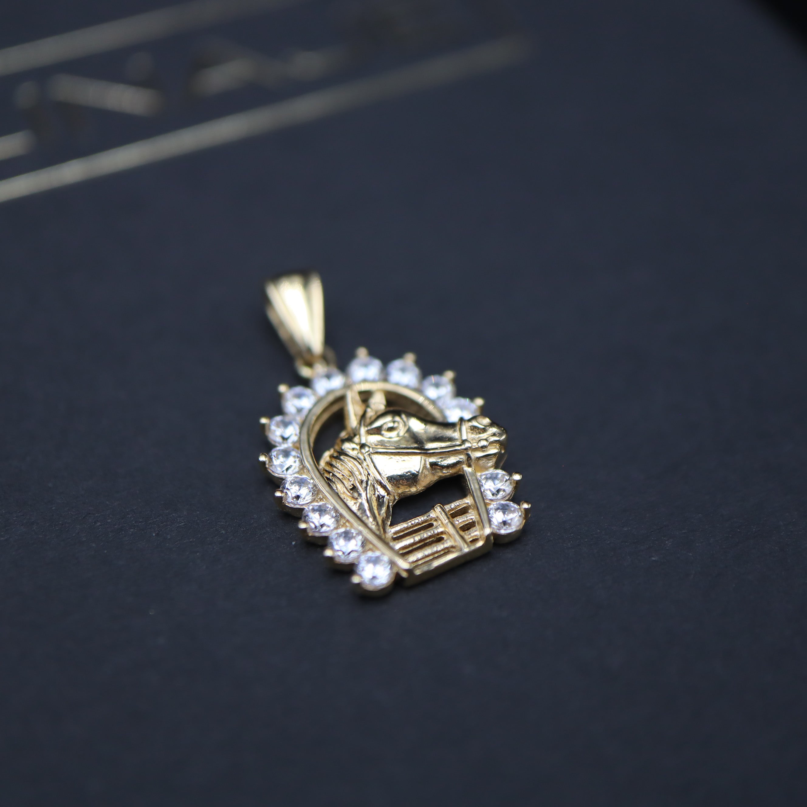 Channel a touch of luck and radiance with our 14k Pendant featuring a CZ-adorned horseshoe over a finely crafted horse. This elegant piece is designed to bring a sense of charm and positivity to your style. The combination of luminous 14k gold and sparkling CZ stones makes this pendant a dazzling symbol of good fortune.