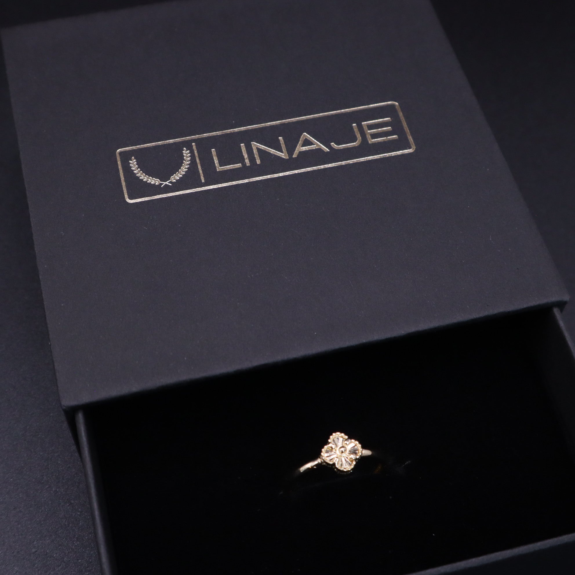 Beautiful clover motif ring symbolizing luck and love.