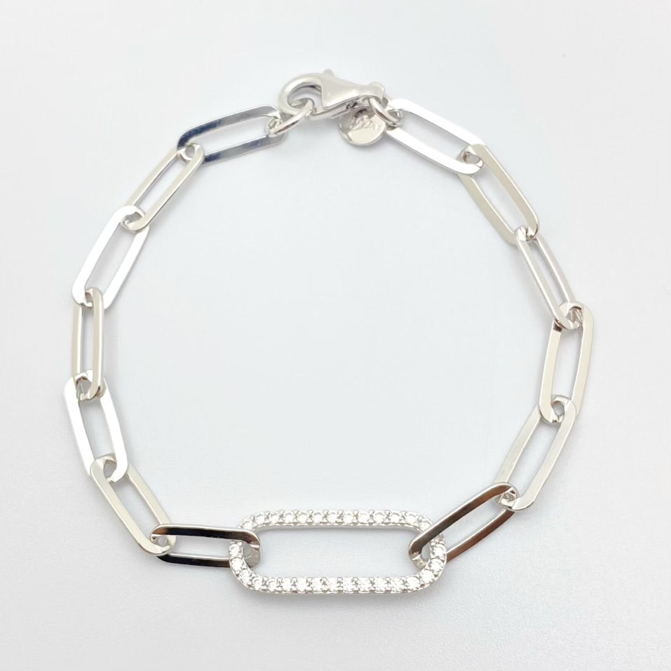 Sterling Silver Paperclip CZ Bracelet