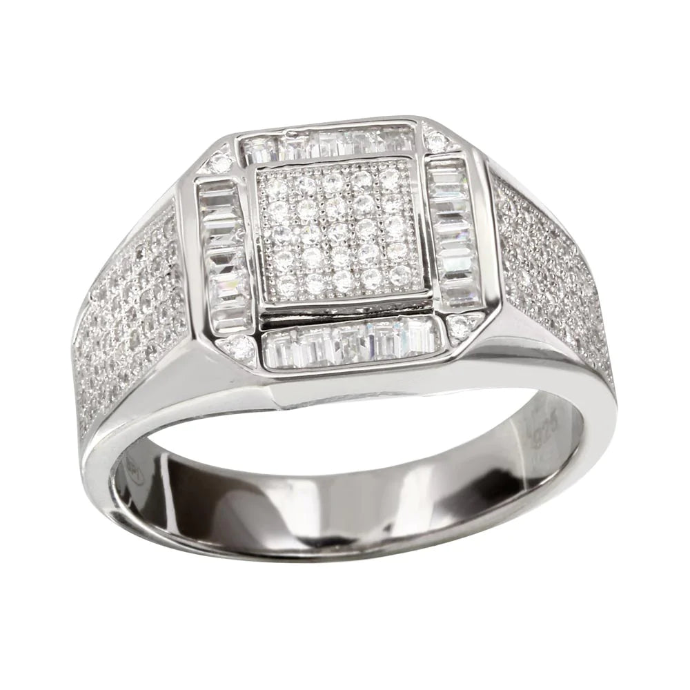 Stunning silver ring featuring high quality baguette cubic zirconias. This piece is made from .925 silver and stamped accordingly.