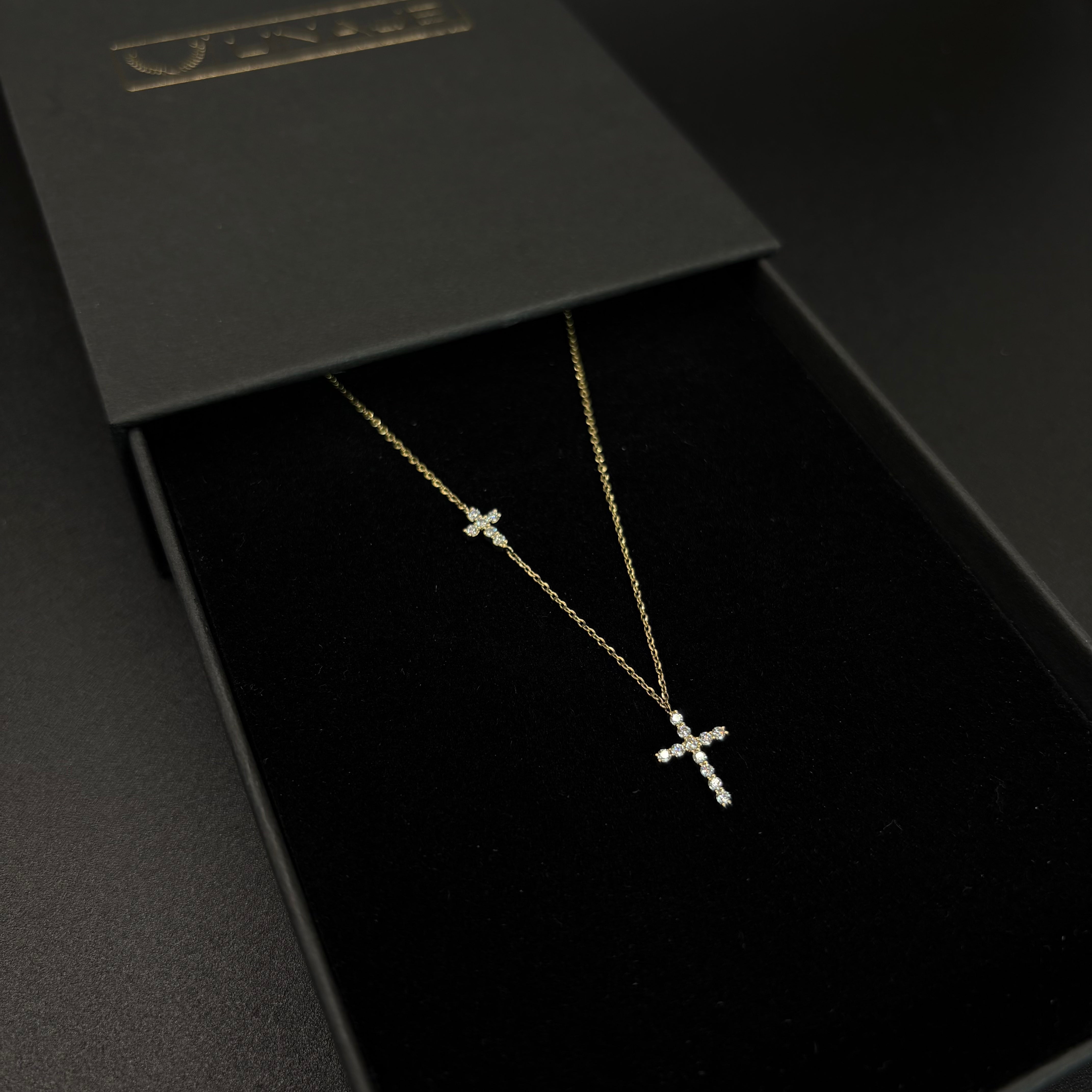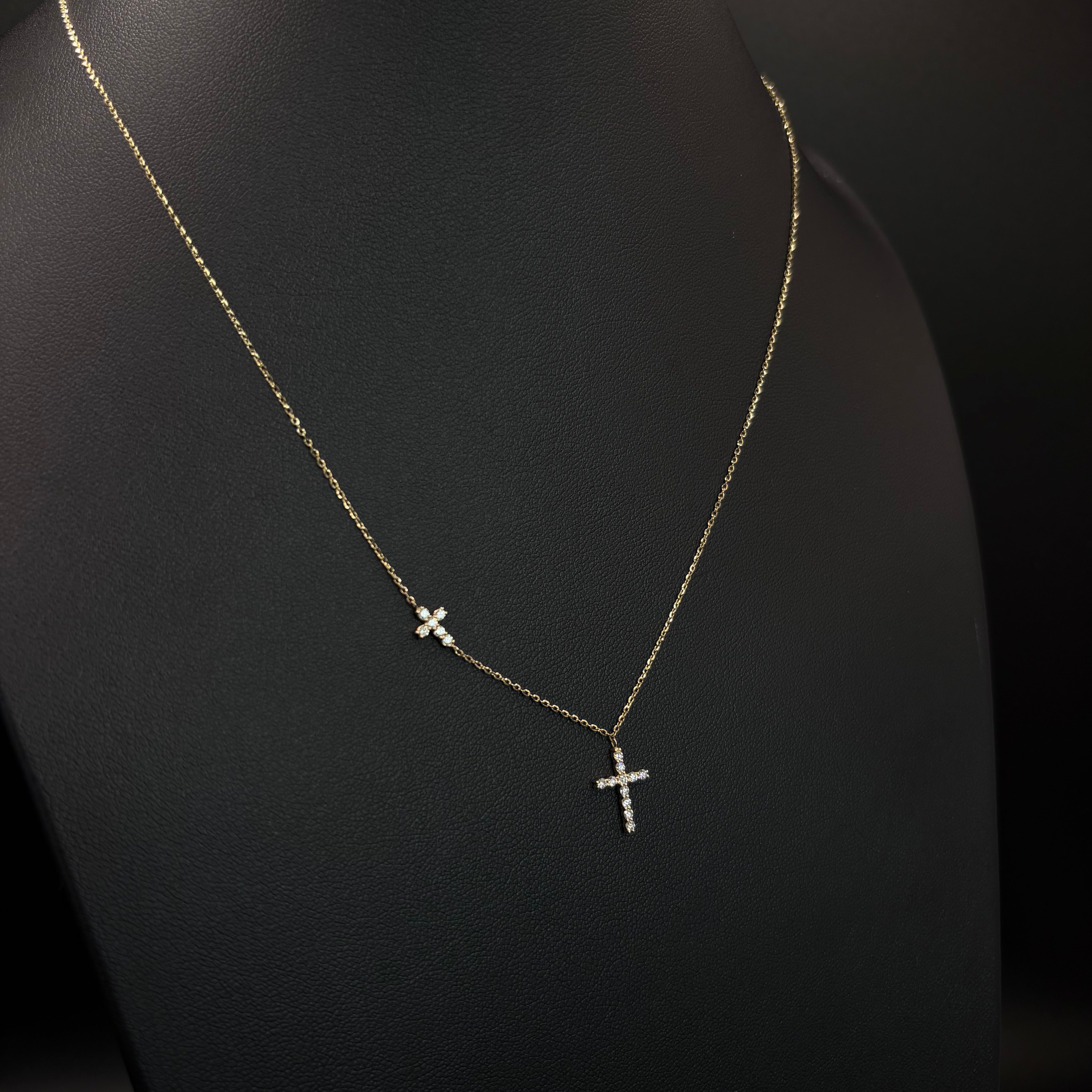 Double Cross Diamond Necklace – 14K Yellow Gold (0.25 CTW Natural Diamonds)