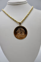 The intricate detailing of the Mexican flag is beautifully captured in this round pendant, showcasing its bold and vibrant colors. The high-quality 14k gold adds an extra touch of elegance and radiance, making it a true statement piece.