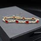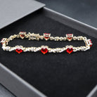 Elevate your jewelry collection with our exquisite set featuring the perfect blend of elegance and sophistication. The centerpiece is our 10k Gold Diamond Bracelet, adorned with .27 carats of radiant white diamonds and complemented by enchanting red stones. This bracelet seamlessly pairs with our Heart-Shaped Earrings, where vibrant green stones take center stage, encircled by a halo of dazzling white diamonds. .21 carats. Together, these pieces create a harmonious symphony of modern glamour and classic allure.
