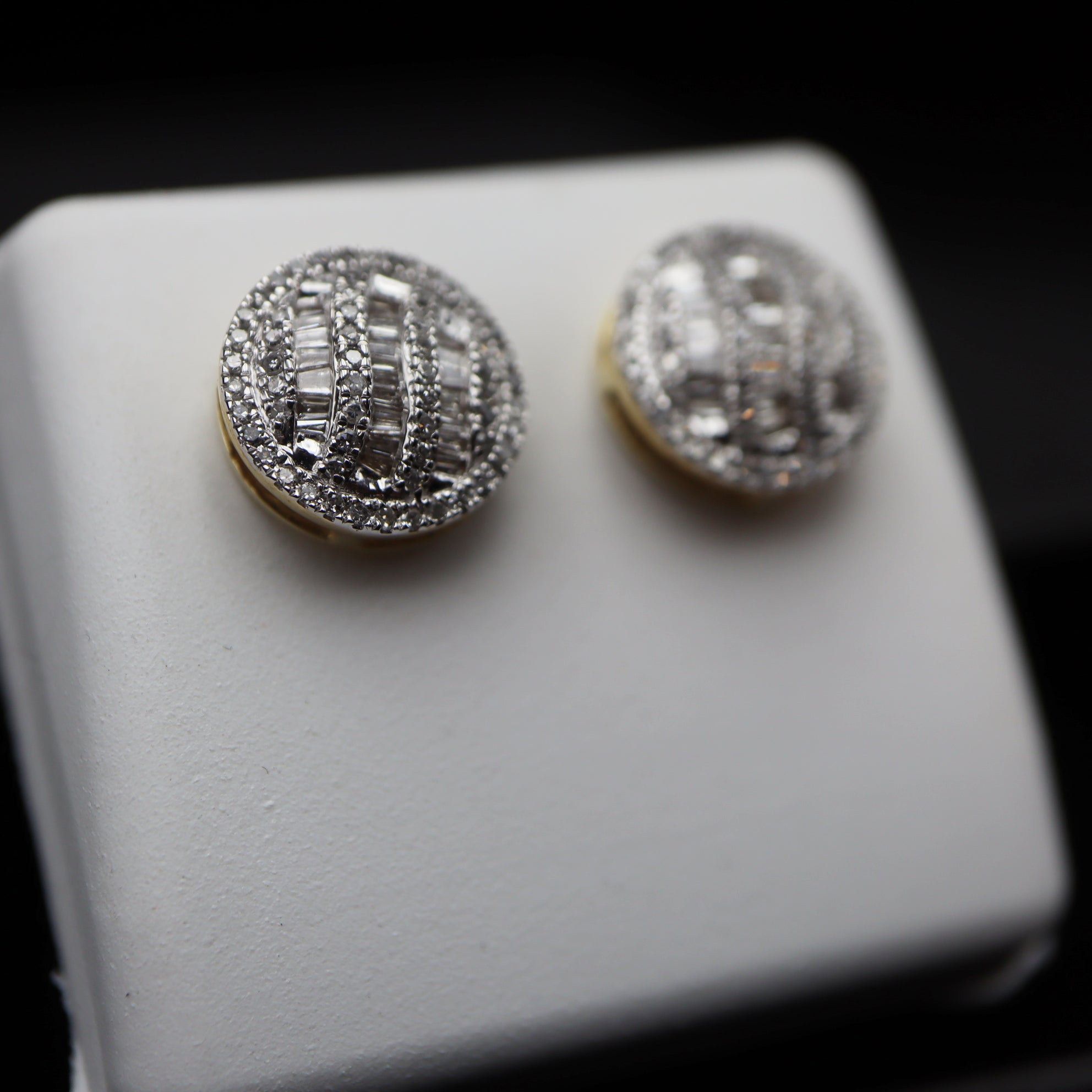 Introducing our 10k gold earrings, showcasing a stylish round baguette design. These earrings combine modern flair with timeless elegance, featuring the brilliance of baguette diamonds in a sleek, circular setting. Elevate your look with this chic and sophisticated pair, perfect for any occasion. Make a statement with the understated glamour of these exquisite round baguette earrings.