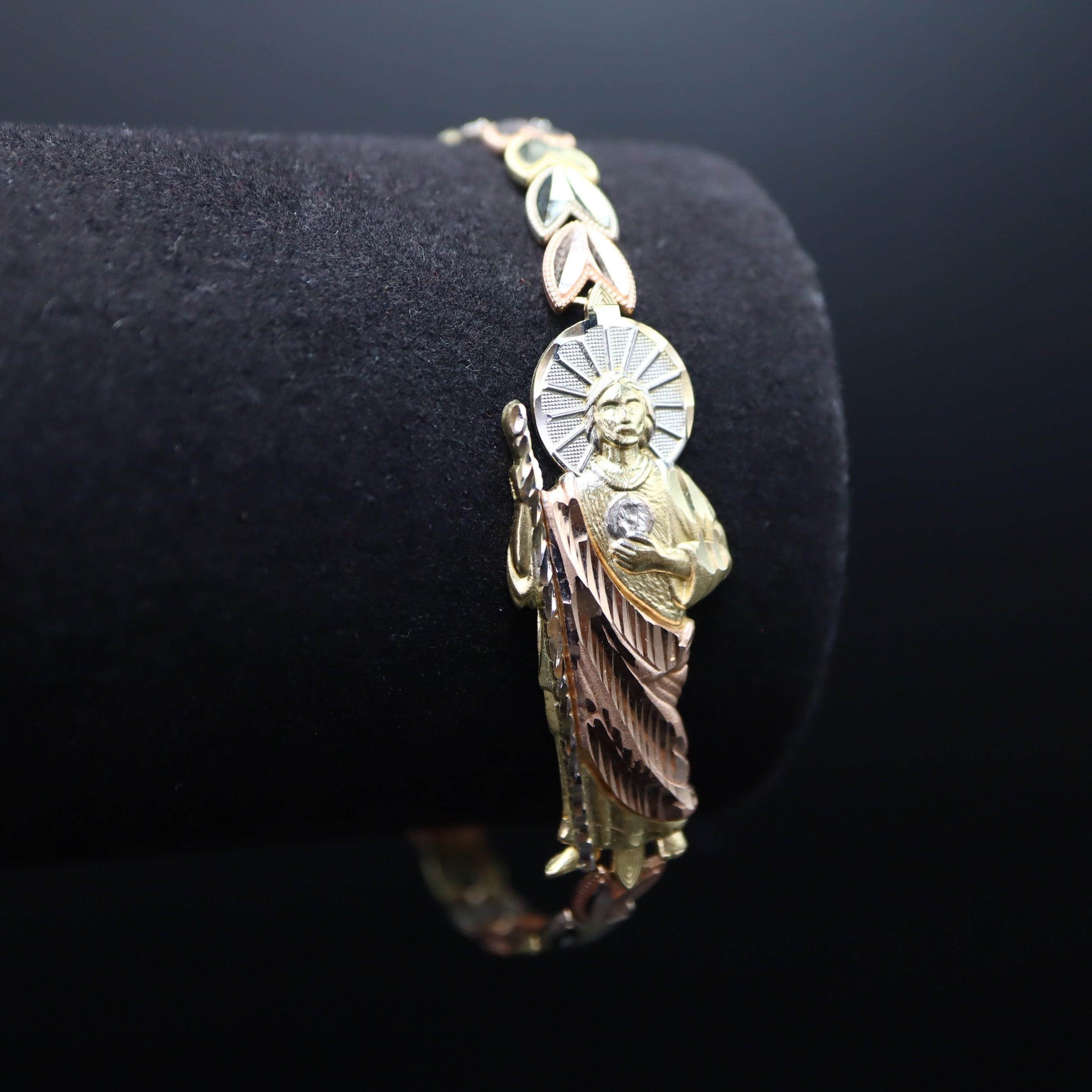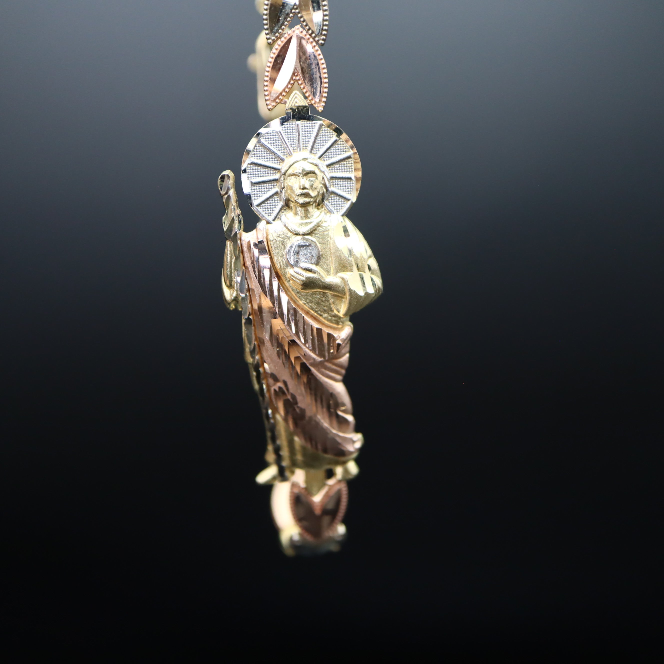 Introducing our exquisite 14K Gold San Judas Bracelet, a perfect blend of style and spirituality. Crafted from the finest quality 14K gold, this bracelet is designed to last a lifetime, making it a timeless addition to your jewelry collection.