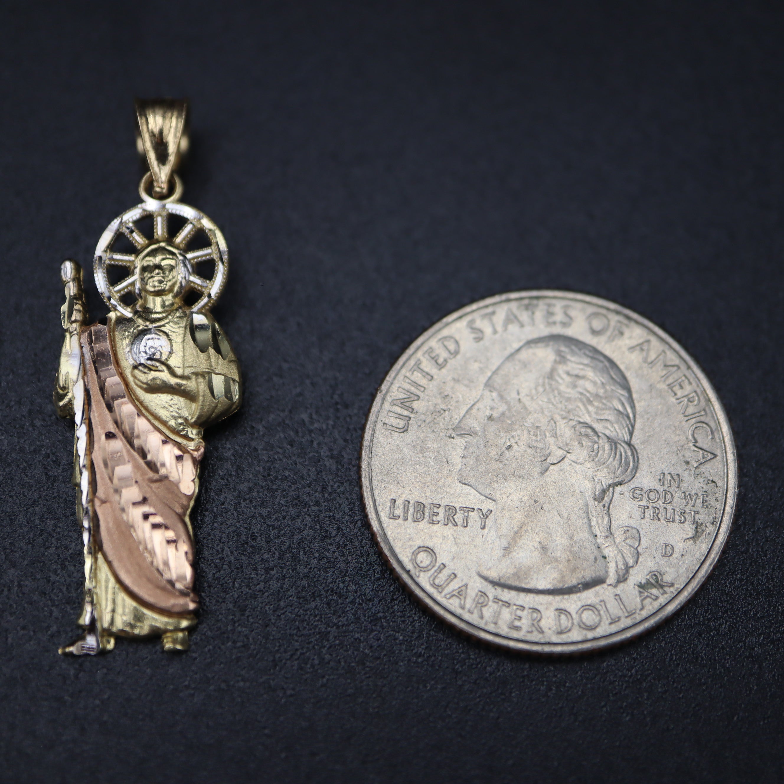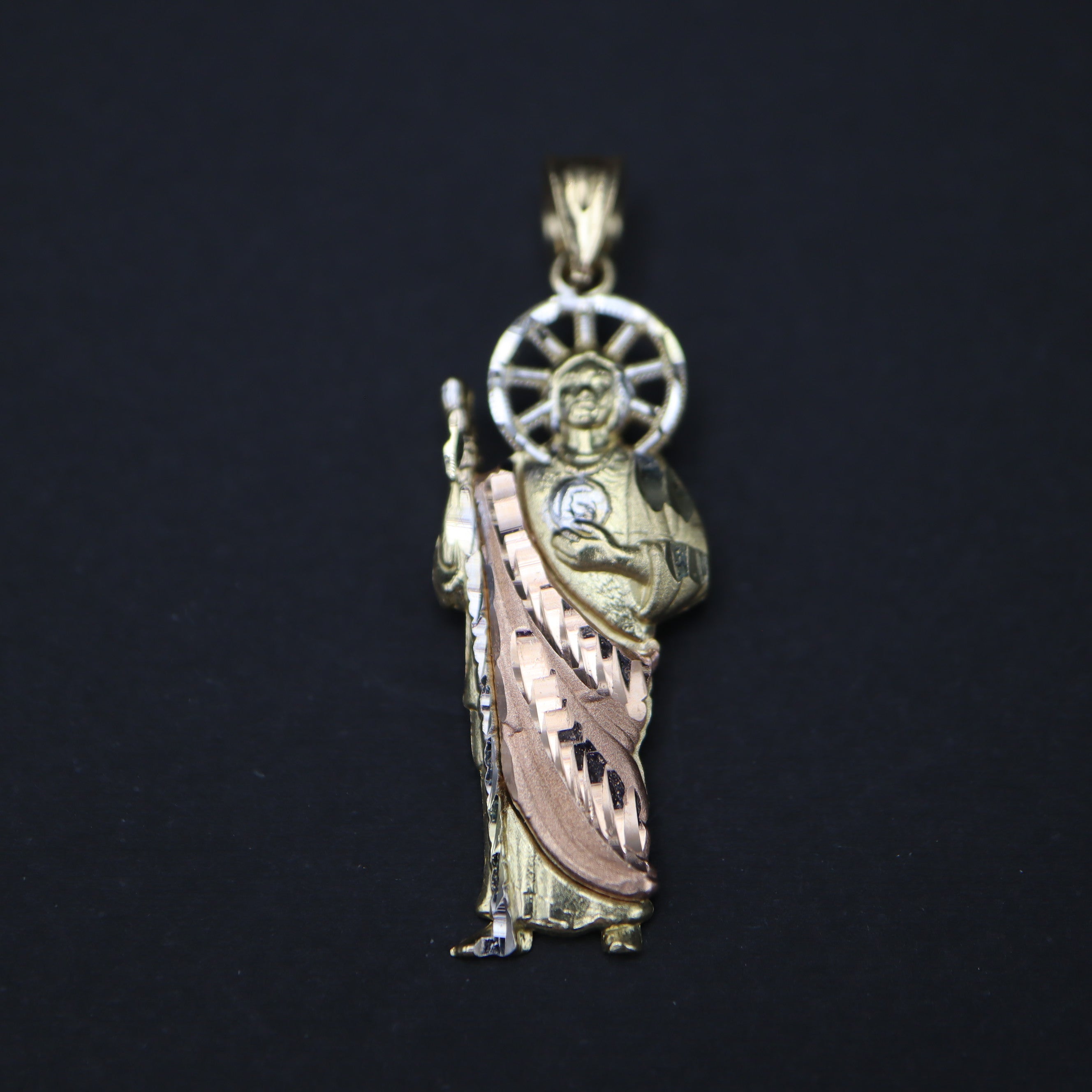 Embrace the divine with our Small Full Body San Judas Pendant, meticulously crafted in radiant 14k gold. This elegant piece beautifully captures the entire essence of San Judas, symbolizing faith, protection, and unwavering grace.