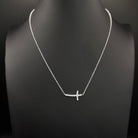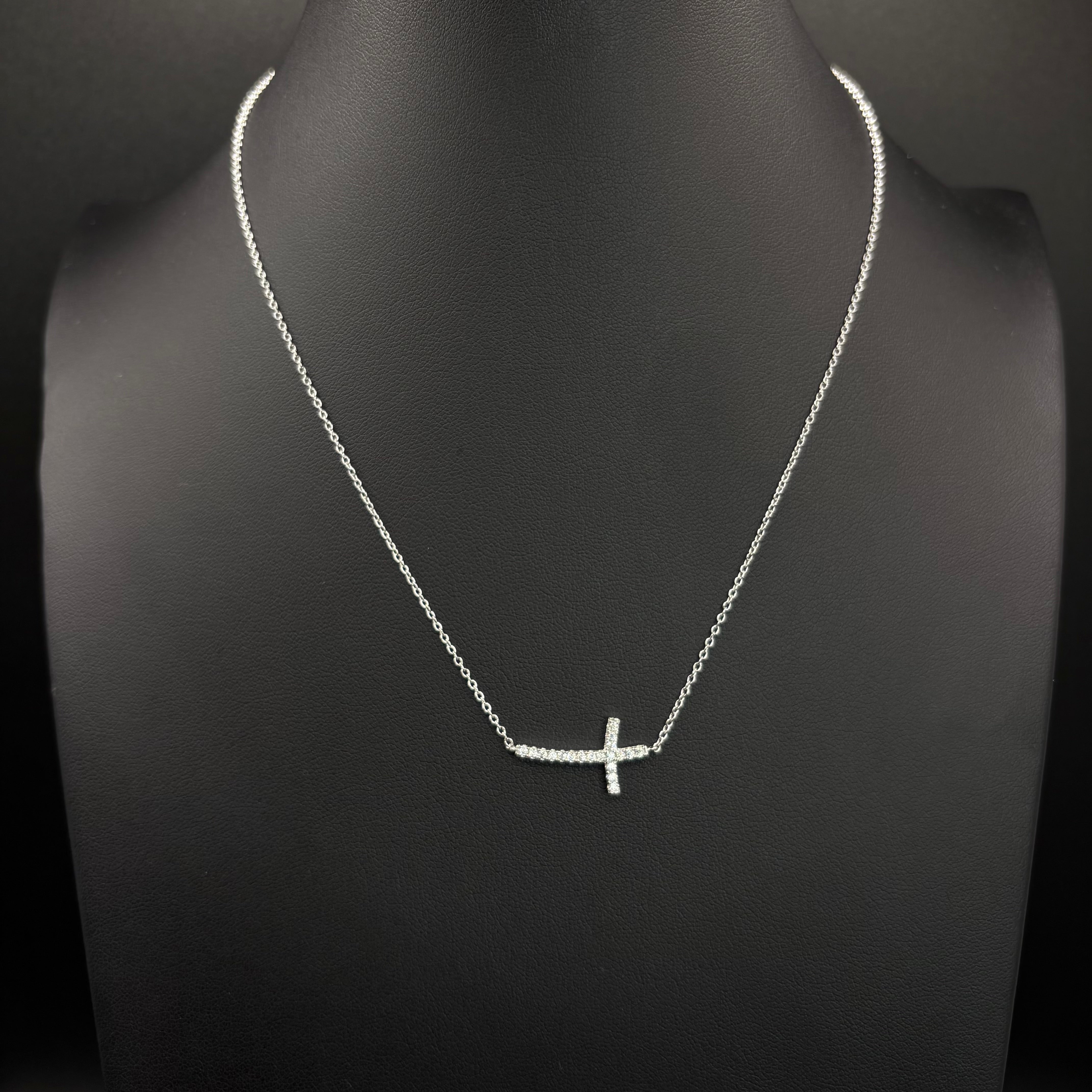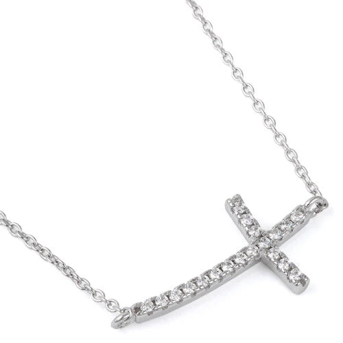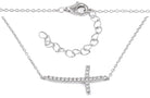 Sterling Silver Cross CZ Necklace – .925 Silver, Rhodium Finish