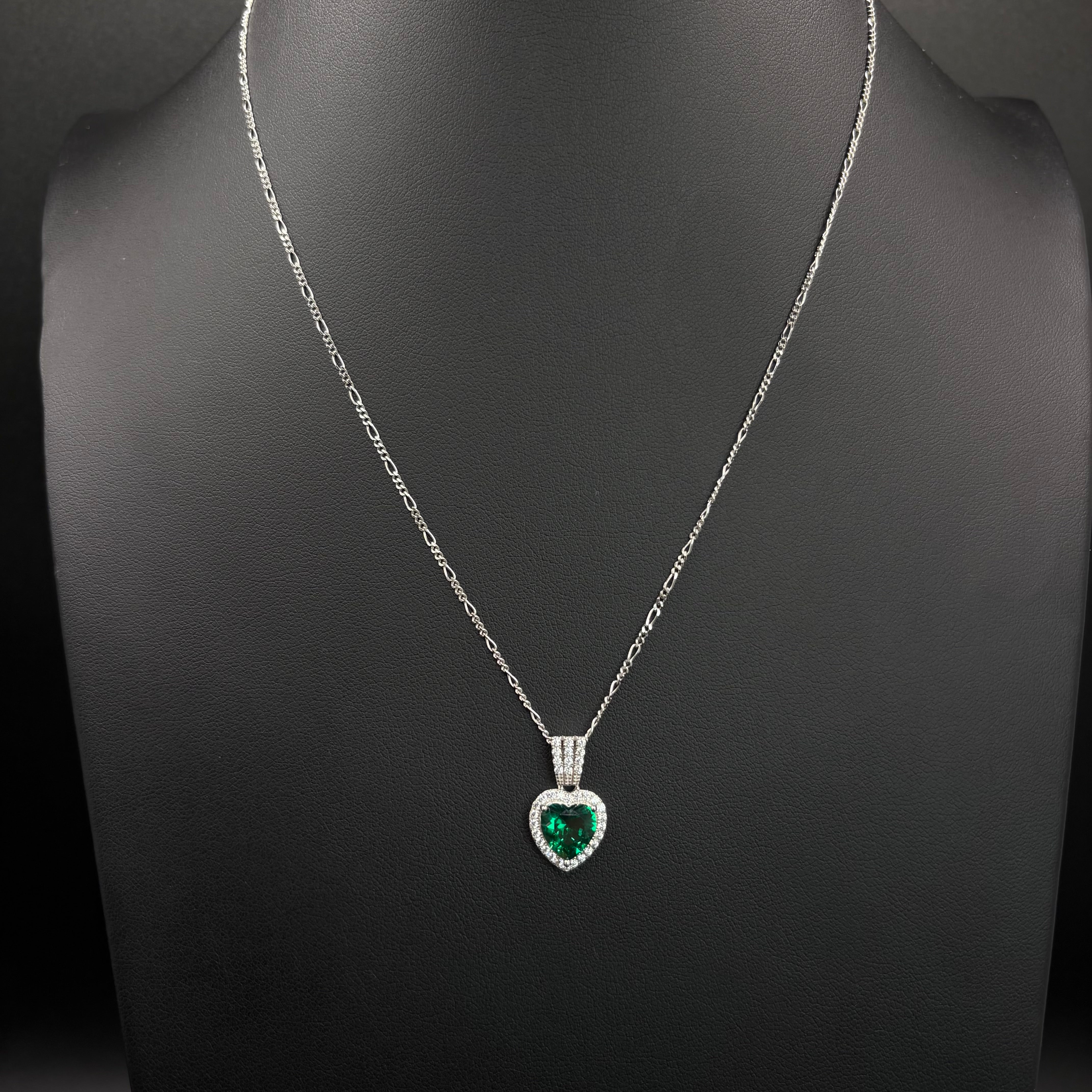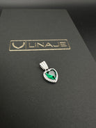 Our Sterling Silver Emerald Big Heart CZ Pendant radiates confidence and warmth with its large emerald-green cubic zirconia heart, expertly set in .925 Sterling Silver and finished with rhodium plating for extra brilliance and protection.