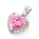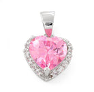 Sterling Silver Heart Shape Pink CZ Pendant – .925 Silver, Rhodium Finish