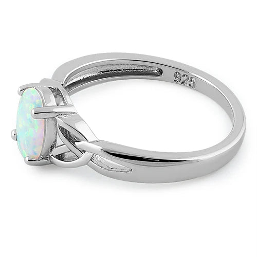 Sterling Silver Oval Celtic White Lab Opal Ring – .925 Silver